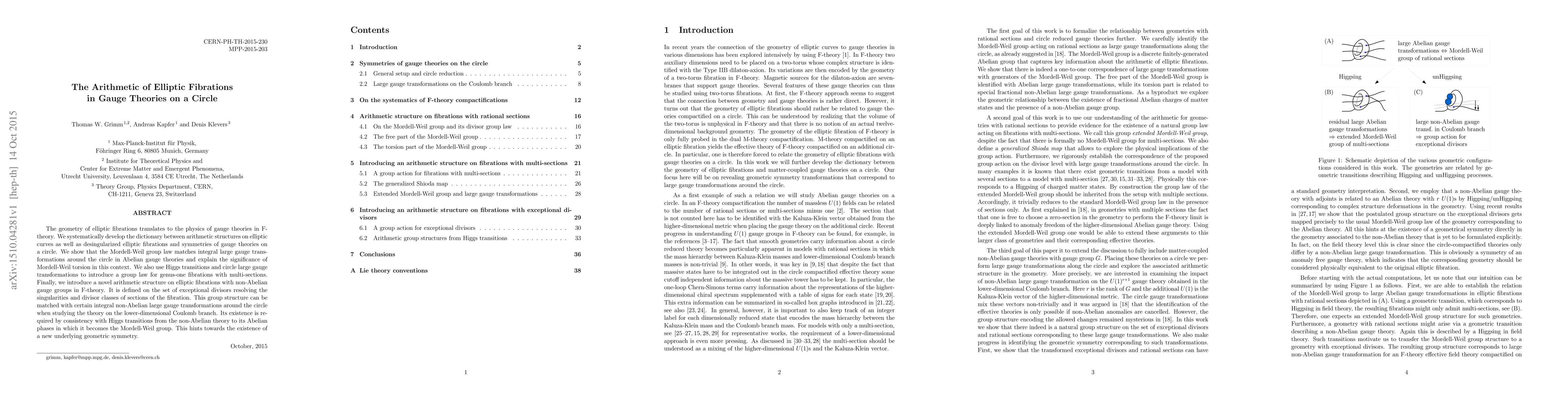This paper explores the arithmetic structures of elliptic fibrations in gauge theories on a circle, establishing a dictionary between elliptic curve arithmetic and gauge theory symmetries. It introduces a novel group structure on elliptic fibrations with non-Abelian gauge groups, matching it with integral large gauge transformations, and suggests a new underlying geometric symmetry.
