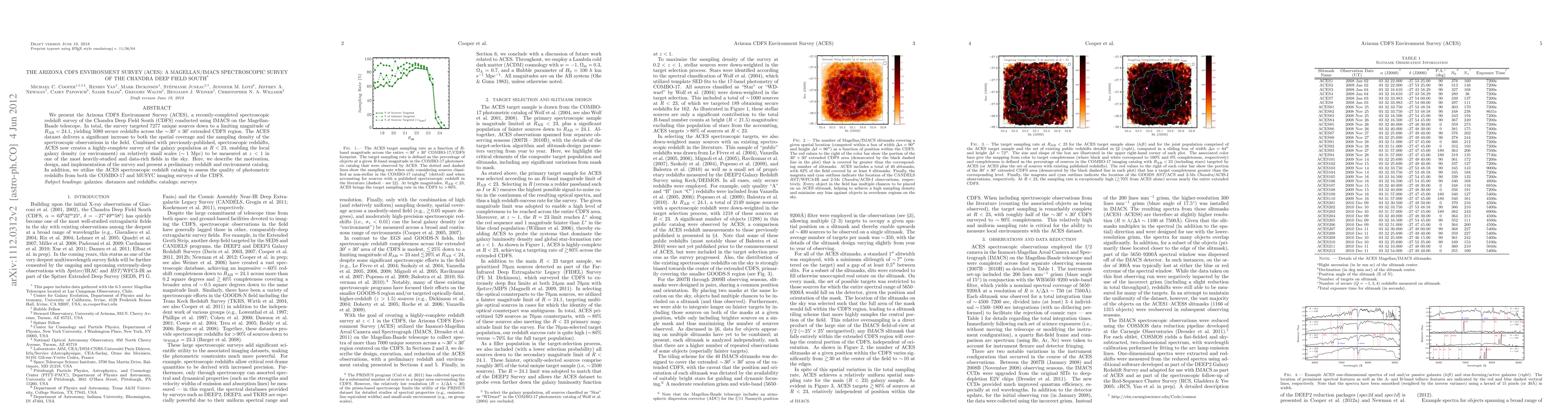 The Arizona CDFS Environment Survey (ACES) is a spectroscopic redshift survey of the Chandra Deep Field South using IMACS on the Magellan-Baade telescope, yielding 5080 secure redshifts for 7277 sources. The survey enhances the spatial coverage and sampling density of the galaxy population at R < 23, enabling detailed local galaxy density measurements at z < 1.