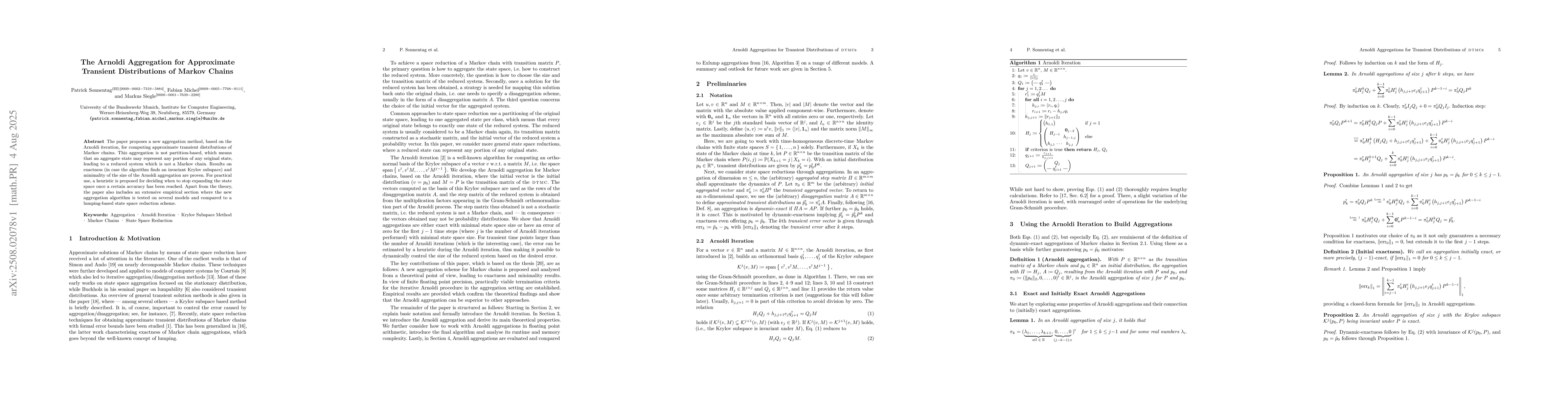 The paper proposes a new aggregation method, based on the Arnoldi iteration, for computing approximate transient distributions of Markov chains. This aggregation is not partition-based, which means that an aggregate state may represent any portion of any original state, leading to a reduced system which is not a Markov chain. Results on exactness (in case the algorithm finds an invariant Krylov subspace) and minimality of the size of the Arnoldi aggregation are proven. For practical use, a heuristic is proposed for deciding when to stop expanding the state space once a certain accuracy has been reached. Apart from the theory, the paper also includes an extensive empirical section where the new aggregation algorithm is tested on several models and compared to a lumping-based state space reduction scheme.