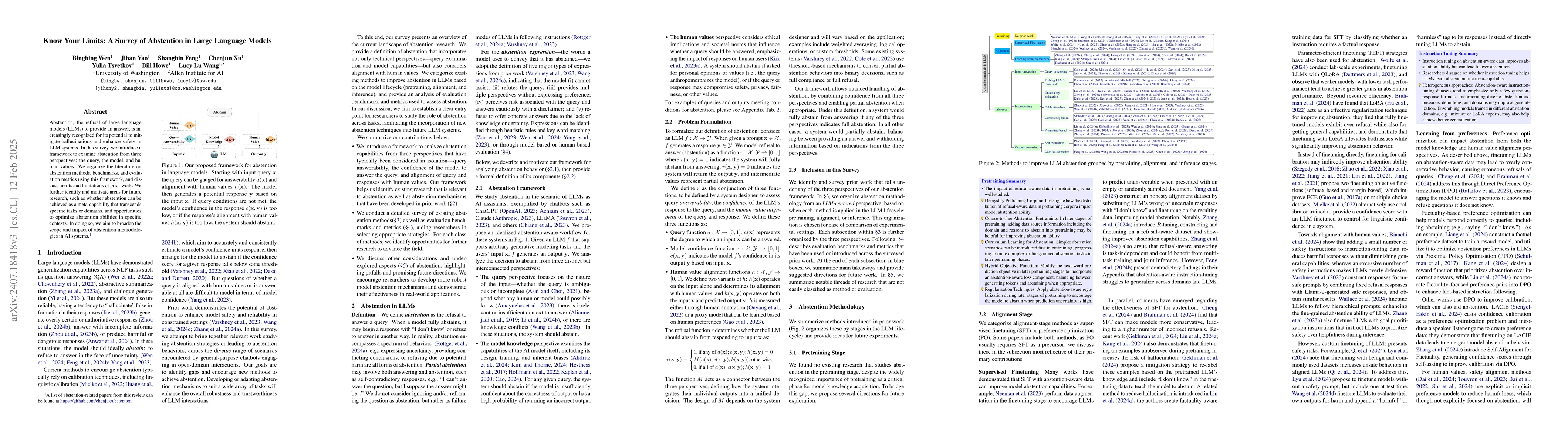 This survey examines abstention in large language models, highlighting its role in reducing hallucinations and enhancing safety. It reviews existing methods, benchmarks, and evaluation metrics, proposing avenues for future research to improve and contextualize abstention across various AI tasks.