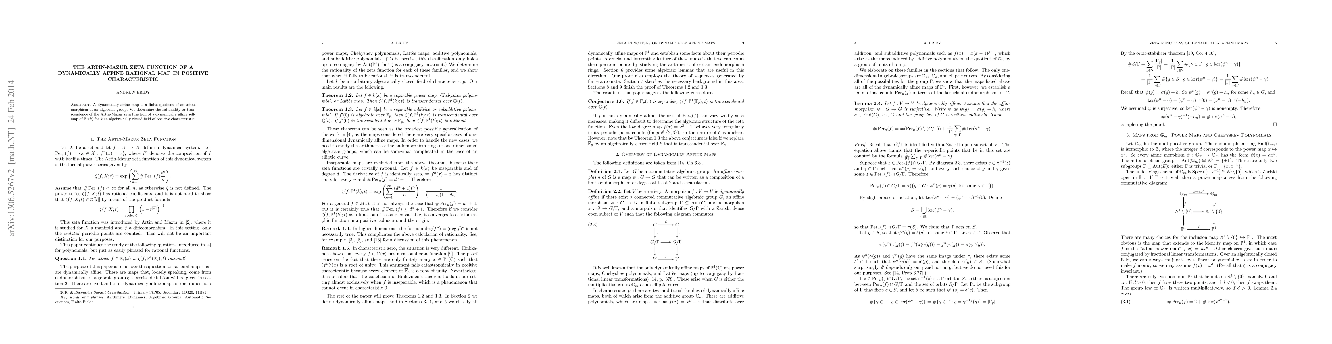 The paper presents detailed analysis of the Artin-Mazur zeta function for dynamically affine maps, linking it to the arithmetic properties of endomorphism rings.