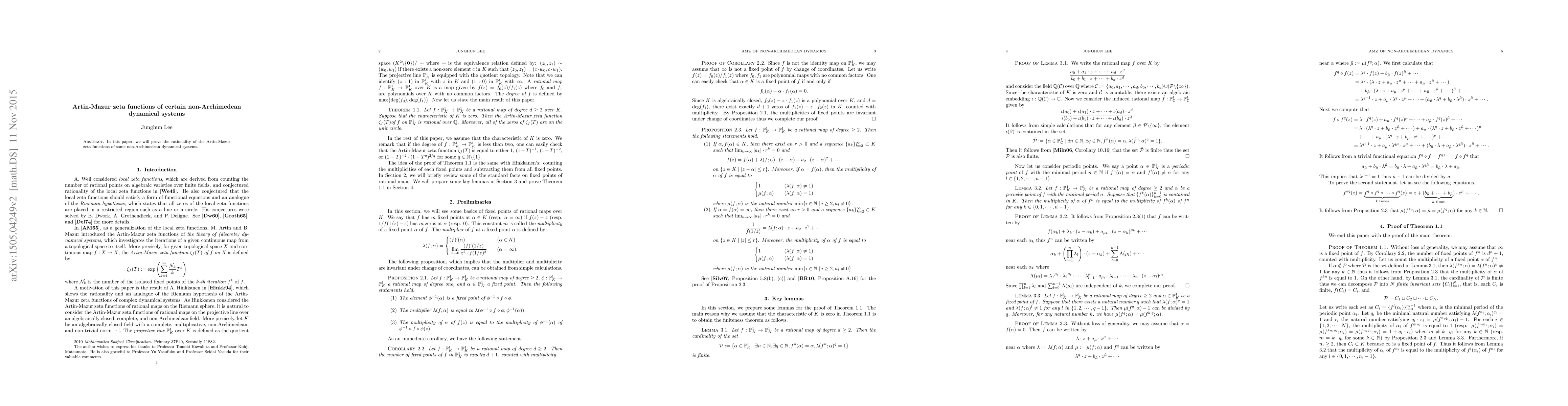 Summary: This paper establishes the rationality of Artin-Mazur zeta functions for specific non-Archimedean dynamical systems, contributing to the understanding of their underlying mathematical structures. The findings enhance the theory of dynamical systems in non-Archimedean settings.