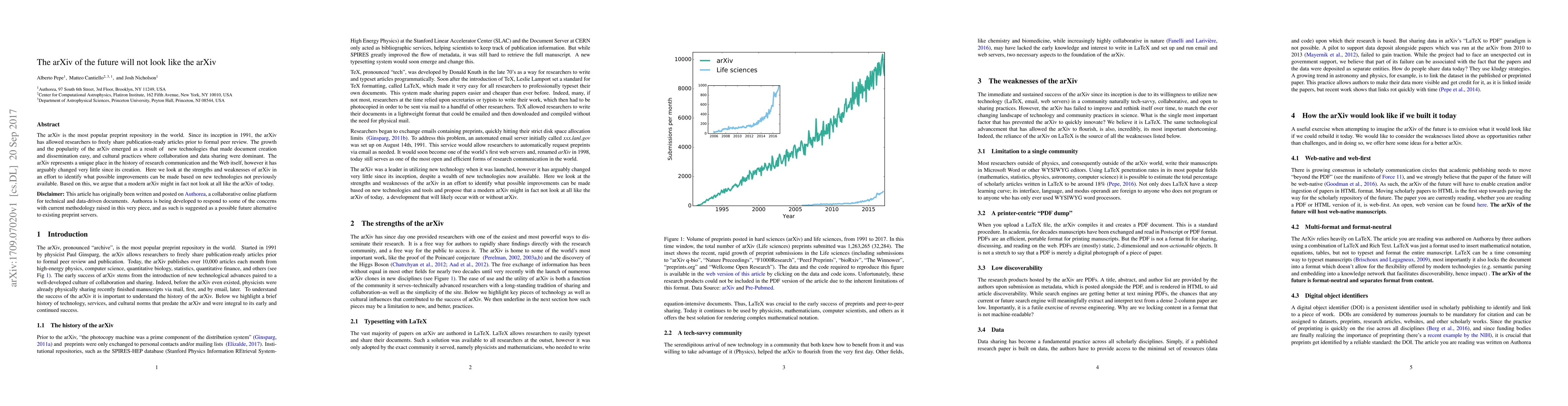 This paper examines the evolution of the arXiv preprint repository, highlighting its strengths and weaknesses, and suggests that future advancements in technology and research communication practices may lead to a significantly different structure and functionality for the platform. The authors argue that the modern arXiv could diverge substantially from its current form.