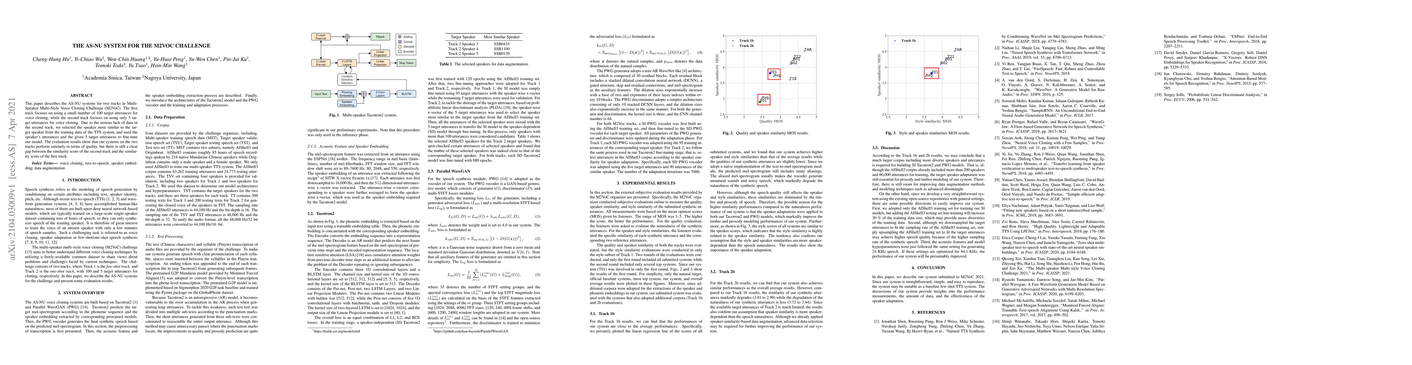 This paper describes the AS-NU systems for two tracks in MultiSpeaker Multi-Style Voice Cloning Challenge (M2VoC). The first track focuses on using a small number of 100 target utterances for voice cloning, while the second track focuses on using only 5 target utterances for voice cloning. Due to the serious lack of data in the second track, we selected the speaker most similar to the target speaker from the training data of the TTS system, and used the speaker's utterances and the given 5 target utterances to fine-tune our model. The evaluation results show that our systems on the two tracks perform similarly in terms of quality, but there is still a clear gap between the similarity score of the second track and the similarity score of the first track.