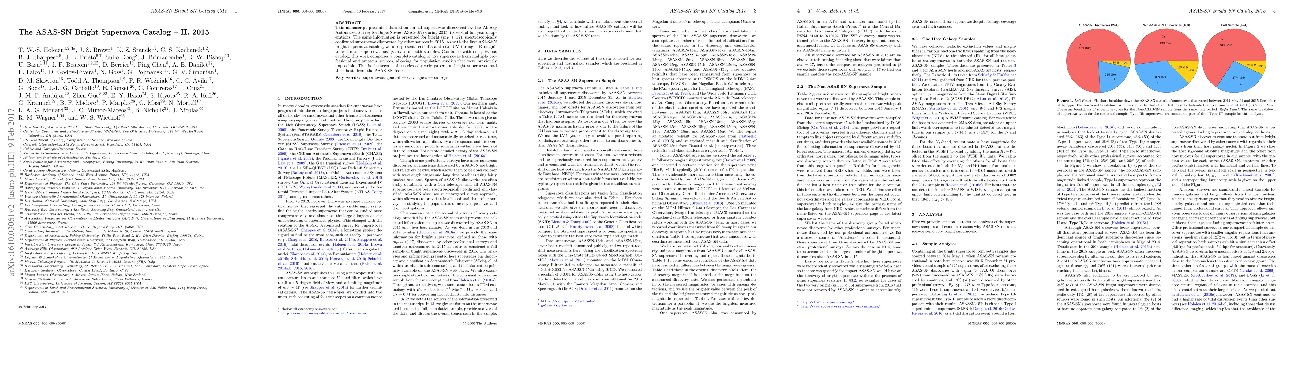 The ASAS-SN team has released a catalog of 455 supernovae discovered in 2015, combining data from professional and amateur sources for population studies.