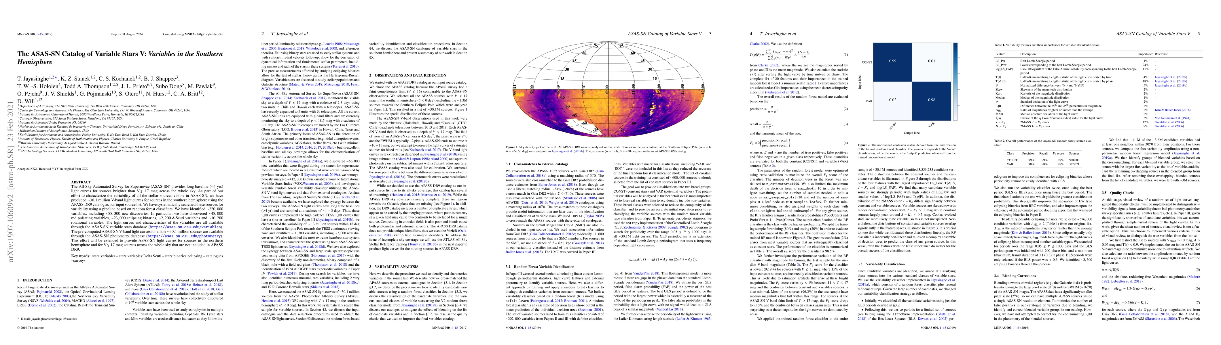 The ASAS-SN survey has identified approximately 220,000 variable stars in the southern hemisphere, including around 88,300 new discoveries, using V-band light curves from the APASS DR9 catalog. The identified variables include various types such as red pulsating stars, eclipsing binaries, and rotational variables.