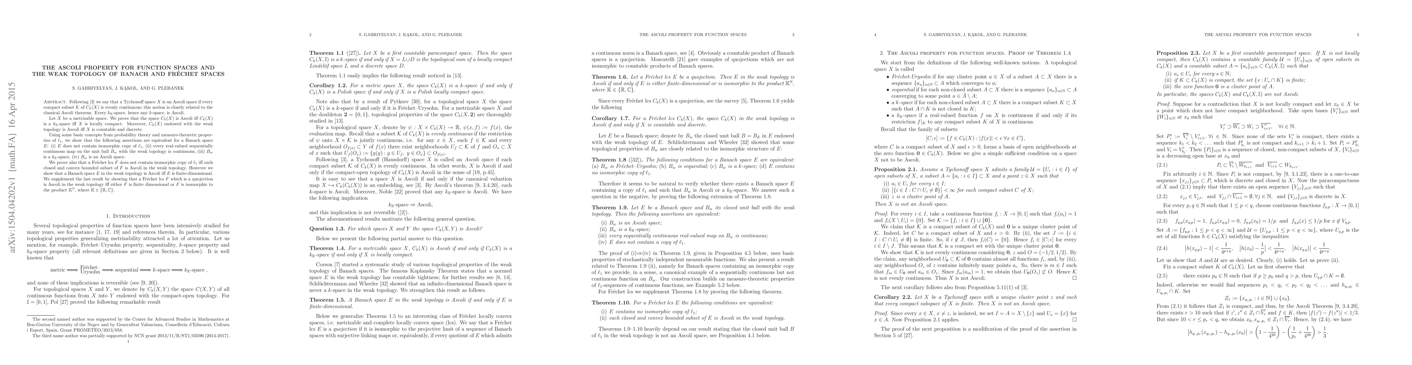 This paper explores the Ascoli property in function spaces and weak topologies of Banach and Fréchet spaces. It establishes conditions under which function spaces are Ascoli, particularly linking local compactness of the underlying space to the Ascoli property. It also connects the Ascoli property with the absence of $\ell_1$ subspaces and the continuity of real-valued maps in the weak topology.