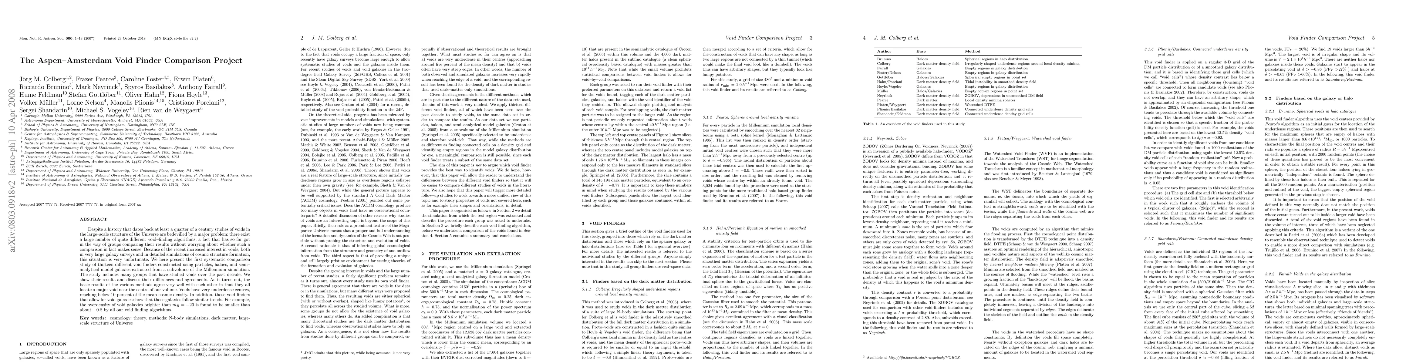 Despite a history that dates back at least a quarter of a century studies of voids in the large--scale structure of the Universe are bedevilled by a major problem: there exist a large number of quite different void--finding algorithms, a fact that has so far got in the way of groups comparing their results without worrying about whether such a comparison in fact makes sense. Because of the recent increased interest in voids, both in very large galaxy surveys and in detailed simulations of cosmic structure formation, this situation is very unfortunate. We here present the first systematic comparison study of thirteen different void finders constructed using particles, haloes, and semi--analytical model galaxies extracted from a subvolume of the Millennium simulation. The study includes many groups that have studied voids over the past decade. We show their results and discuss their differences and agreements. As it turns out, the basic results of the various methods agree very well with each other in that they all locate a major void near the centre of our volume. Voids have very underdense centres, reaching below 10 percent of the mean cosmic density. In addition, those void finders that allow for void galaxies show that those galaxies follow similar trends. For example, the overdensity of void galaxies brighter than $m_B = -20 $ is found to be smaller than about -0.8 by all our void finding algorithms.