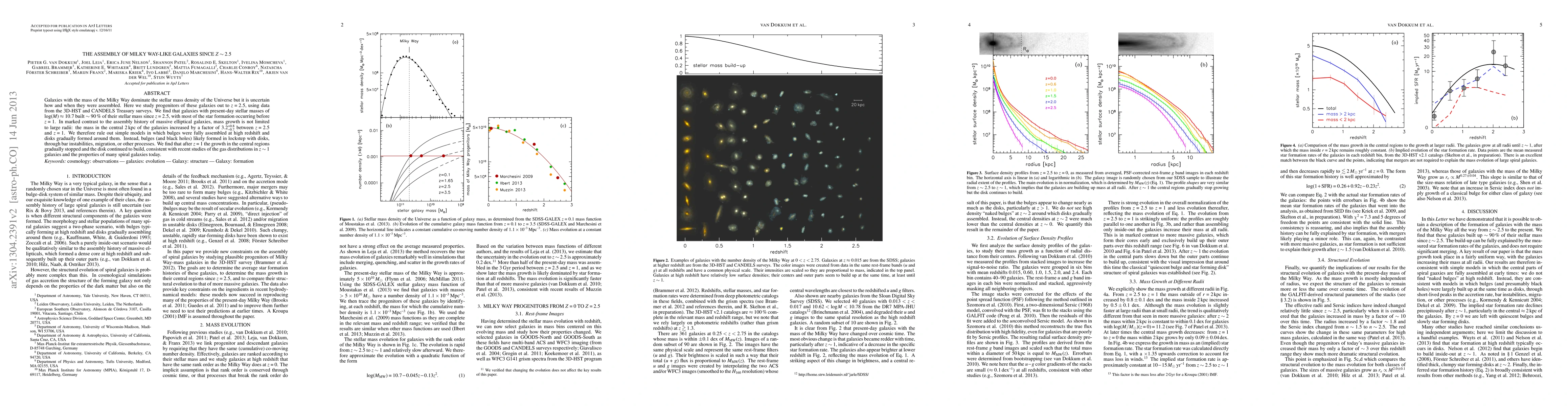 This study reveals that Milky Way-sized galaxies assembled most of their stellar mass by z=1, with significant growth occurring in both central regions and disks. Contrary to massive elliptical galaxies, the central mass increased substantially before z=1, suggesting that bulges and disks formed concurrently rather than sequentially.