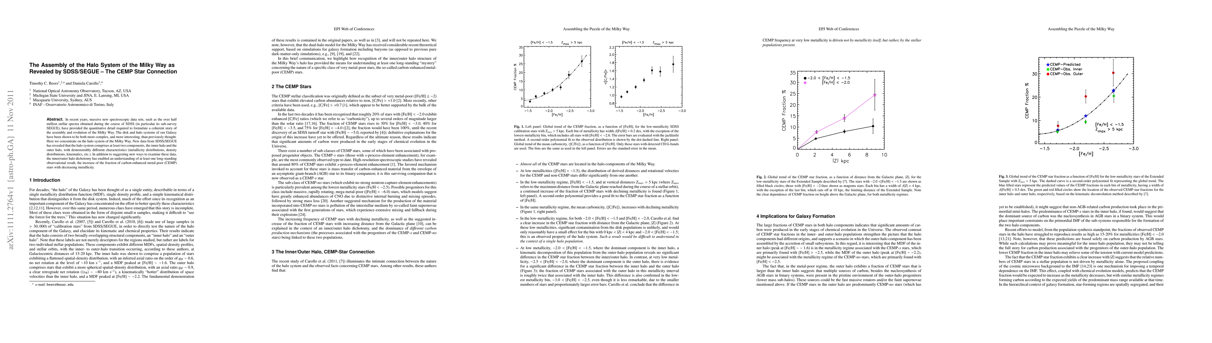This paper uses SDSS/SEGUE data to reveal the Milky Way's halo system comprises two distinct components: inner and outer halos with different characteristics. The findings help explain the increase in carbon-enhanced metal-poor (CEMP) stars at lower metallicities.