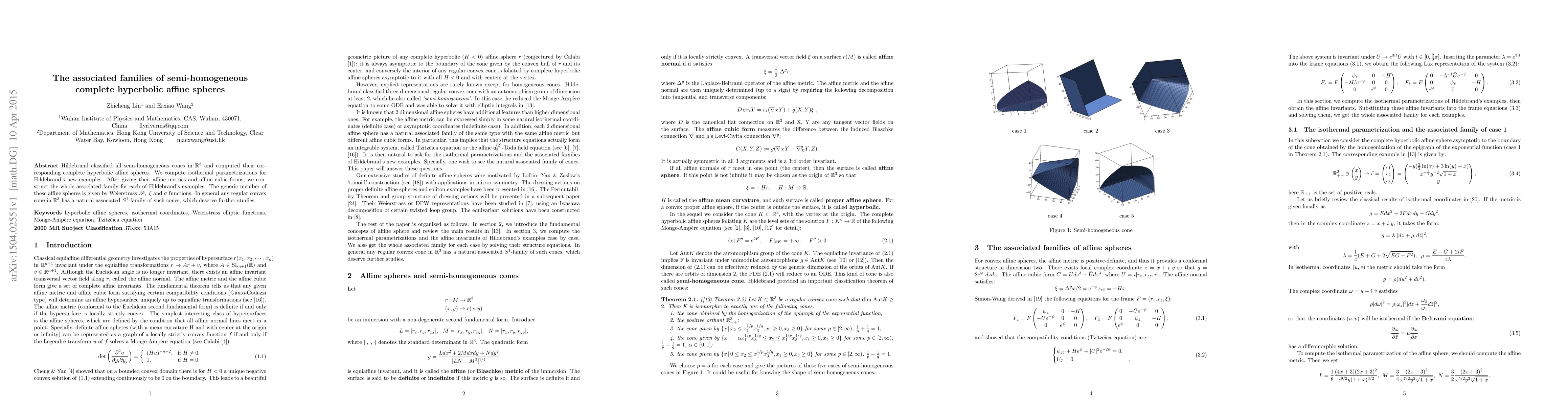 Hildebrand classified all semi-homogeneous cones in $\mathbb{R}^3$ and computed their corresponding complete hyperbolic affine spheres. We compute isothermal parametrizations for Hildebrand's new examples. After giving their affine metrics and affine cubic forms, we construct the whole associated family for each of Hildebrand's examples. The generic member of these affine spheres is given by Weierstrass $\mathscr{P}, ~\zeta ~\text{and} ~\sigma$ functions. In general any regular convex cone in $\mathbb{R}^3$ has a natural associated $S^1$-family of such cones, which deserve further studies.