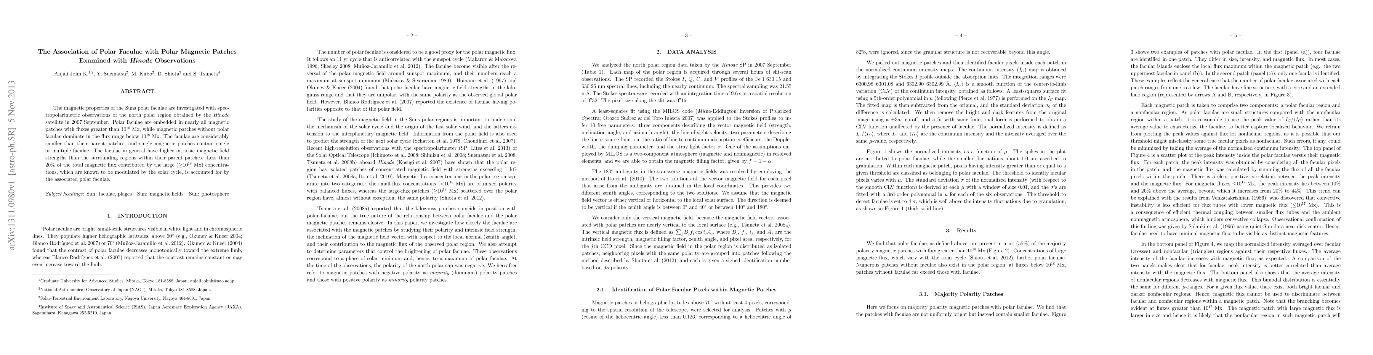 This study using Hinode satellite observations reveals that polar faculae on the Sun are closely associated with magnetic patches exceeding $10^{18}$ Mx, while smaller patches lack faculae. The faculae exhibit higher intrinsic magnetic field strengths than their surrounding regions.