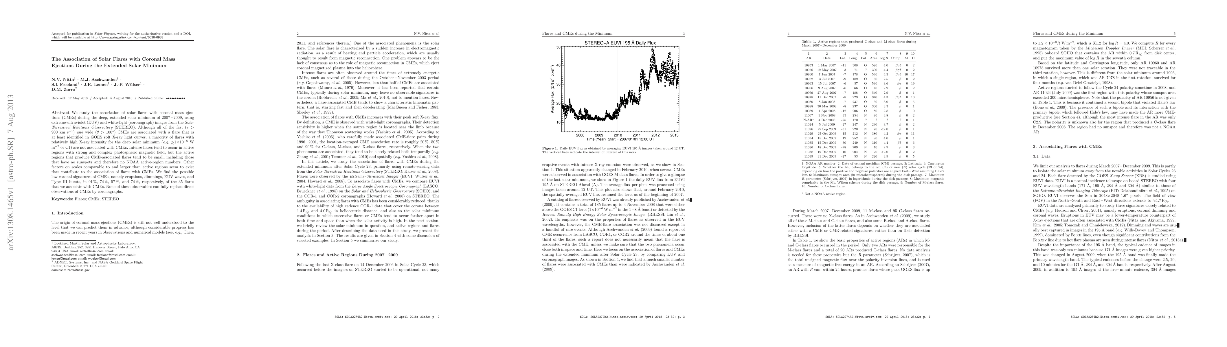 This study investigates the relationship between solar flares and coronal mass ejections (CMEs) during the extended solar minimum of 2007-2009, revealing that while fast and wide CMEs are always associated with flares, many intense flares during this period are not linked to CMEs. The research highlights the presence of low coronal signatures in flares associated with CMEs, but emphasizes that these cannot fully replace direct CME observations.