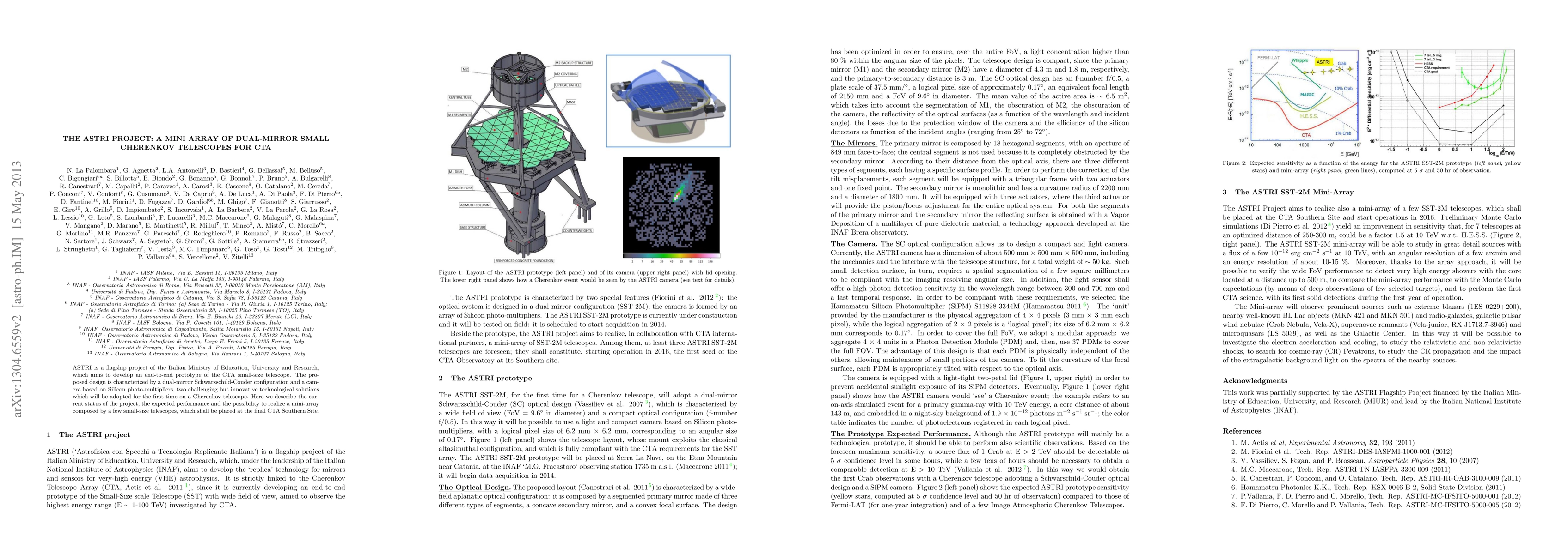 ASTRI is a flagship project of the Italian Ministry of Education, University and Research, which aims to develop an end-to-end prototype of the CTA small-size telescope. The proposed design is characterized by a dual-mirror Schwarzschild-Couder configuration and a camera based on Silicon photo-multipliers, two challenging but innovative technological solutions which will be adopted for the first time on a Cherenkov telescope. Here we describe the current status of the project, the expected performance and the possibility to realize a mini-array composed by a few small-size telescopes, which shall be placed at the final CTA Southern Site.