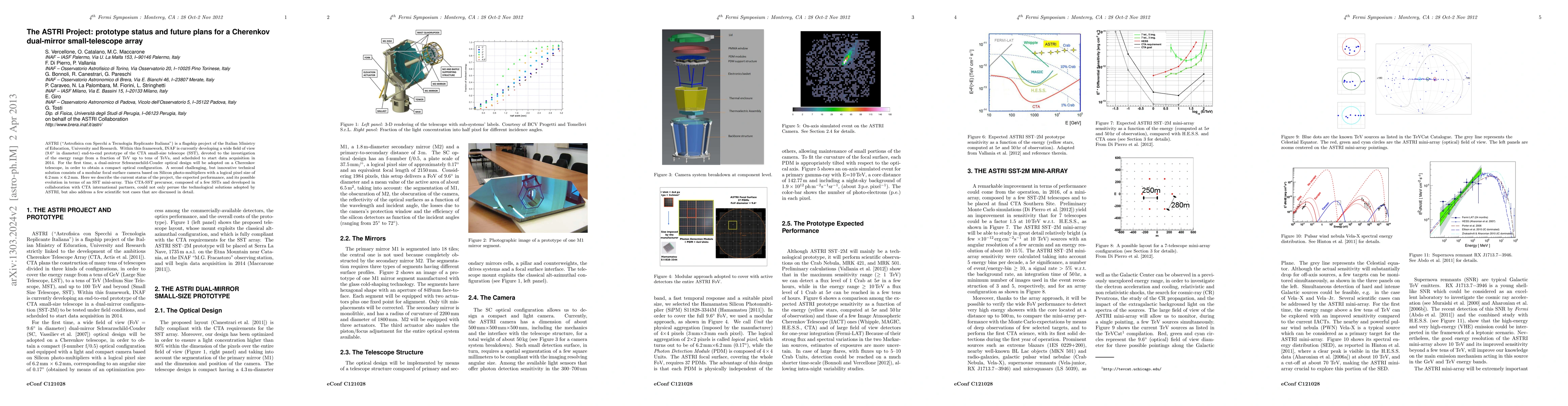 ASTRI ("Astrofisica con Specchi a Tecnologia Replicante Italiana") is a flagship project of the Italian Ministry of Education, University and Research. Within this framework, INAF is currently developing a wide field of view (9.6 degrees in diameter) end-to-end prototype of the CTA small-size telescope (SST), devoted to the investigation of the energy range from a fraction of TeV up to tens of TeVs, and scheduled to start data acquisition in 2014. For the first time, a dual-mirror Schwarzschild-Couder optical design will be adopted on a Cherenkov telescope, in order to obtain a compact optical configuration. A second challenging, but innovative technical solution consists of a modular focal surface camera based on Silicon photo-multipliers with a logical pixel size of 6.2mm x 6.2mm. Here we describe the current status of the project, the expected performance, and its possible evolution in terms of an SST mini-array. This CTA-SST precursor, composed of a few SSTs and developed in collaboration with CTA international partners, could not only peruse the technological solutions adopted by ASTRI, but also address a few scientific test cases that are discussed in detail.
