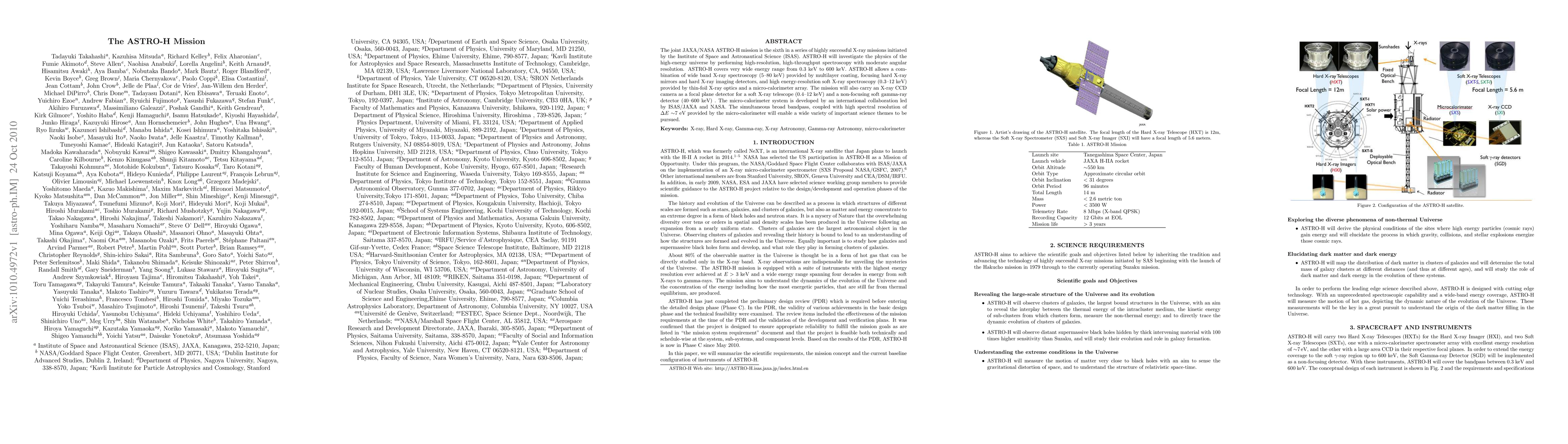 The ASTRO-H mission, a joint JAXA/NASA project, aims to explore high-energy universe physics through high-resolution X-ray spectroscopy across a broad energy range from 0.3 keV to 600 keV, utilizing advanced multilayer coatings, mirrors, and micro-calorimeter arrays for detailed spectral analysis.