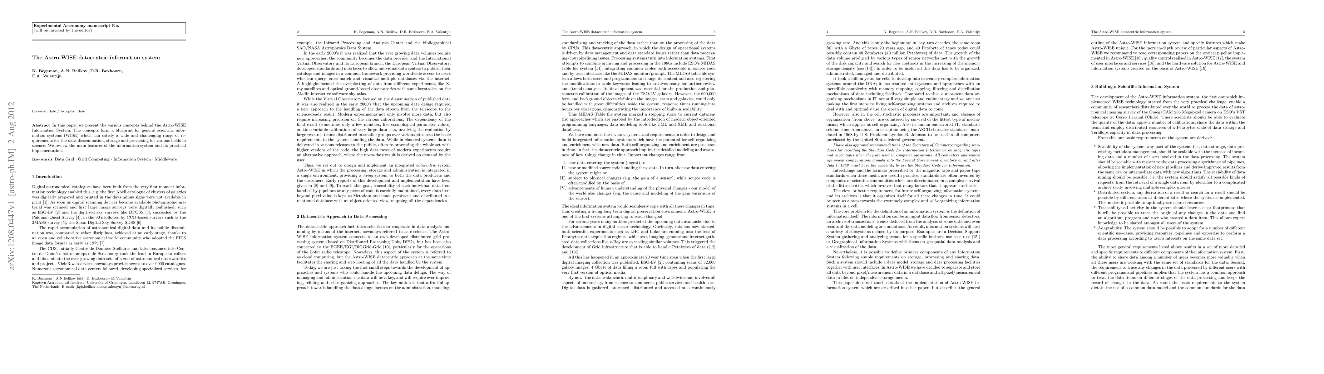 The Astro-WISE Information System provides a comprehensive blueprint for scientific information systems, focusing on data dissemination, storage, and processing across diverse scientific fields. Its practical implementation highlights key features that meet complex data management needs.