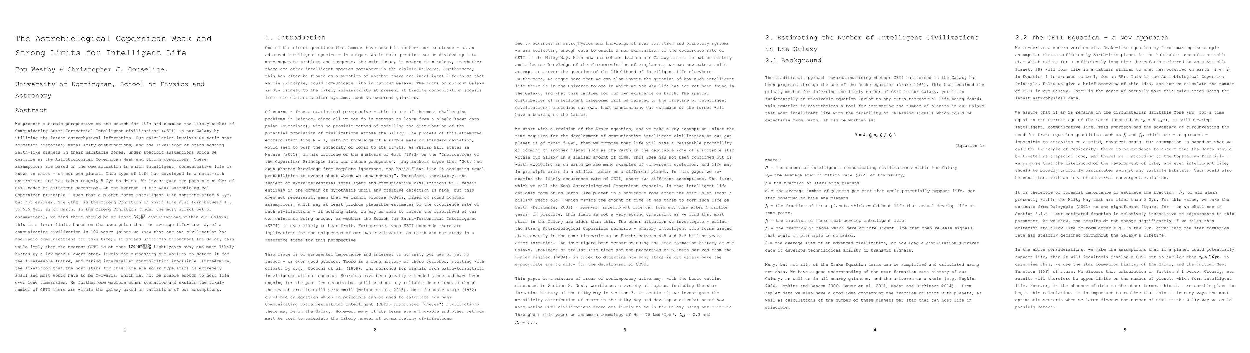We present a cosmic perspective on the search for life and examine the likely number of Communicating Extra-Terrestrial Intelligent civilizations (CETI) in our Galaxy by utilizing the latest astrophysical information. Our calculation involves Galactic star-formation histories, metallicity distributions, and the likelihood of stars hosting Earth-like planets in Habitable Zones, under specific assumptions which we describe as the Astrobiological Copernican Weak and Strong conditions. These assumptions are based on the one situation in which intelligent, communicative life is known to exist - on our own planet. This type of life has developed in a metal-rich environment and has taken roughly 5 Gyr to do so. We investigate the possible number of CETI based on different scenarios. At one extreme is the Weak Astrobiological Copernican principle - such that a planet forms intelligent life sometime after 5 Gyr, but not earlier. The other is the Strong Condition in which life must form between 4.5 to 5.5 Gyr, as on Earth. In the Strong Condition (a strict set of assumptions), there should be at least 36$_{-32}^{+175}$ civilizations within our Galaxy: this is a lower limit, based on the assumption that the average life-time, L, of a communicating civilization is 100 years (based on our own at present). If spread uniformly throughout the Galaxy this would imply that the nearest CETI is at most 17000$_{-10000}^{+33600}$ light-years away, and most likely hosted by a low-mass M-dwarf star, far surpassing our ability to detect it for the foreseeable future. Furthermore, the likelihood that the host stars for this life are solar-type stars is extremely small and most would have to be M-dwarfs, which may not be stable enough to host life over long timescales. We furthermore explore other scenarios and explain the likely number of CETI there are within our Galaxy based on variations of our assumptions.