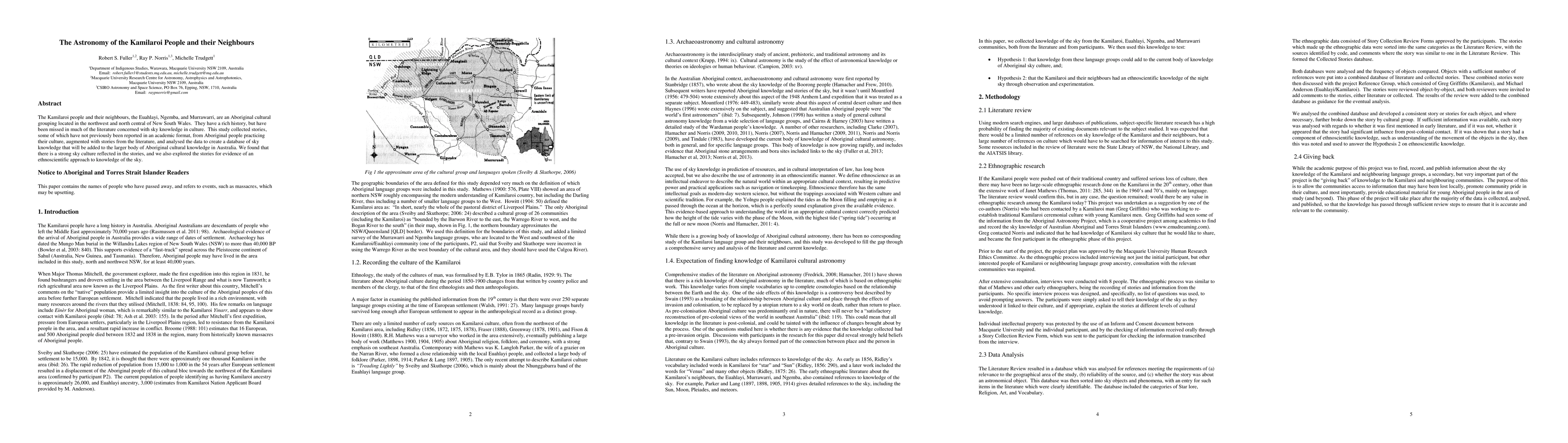This paper documents the astronomy of the Kamilaroi people and their neighbours, revealing a rich tradition of sky knowledge through collected stories and analysis. The study highlights an ethnoscientific approach to understanding the sky, contributing to the broader understanding of Aboriginal cultural knowledge in Australia.