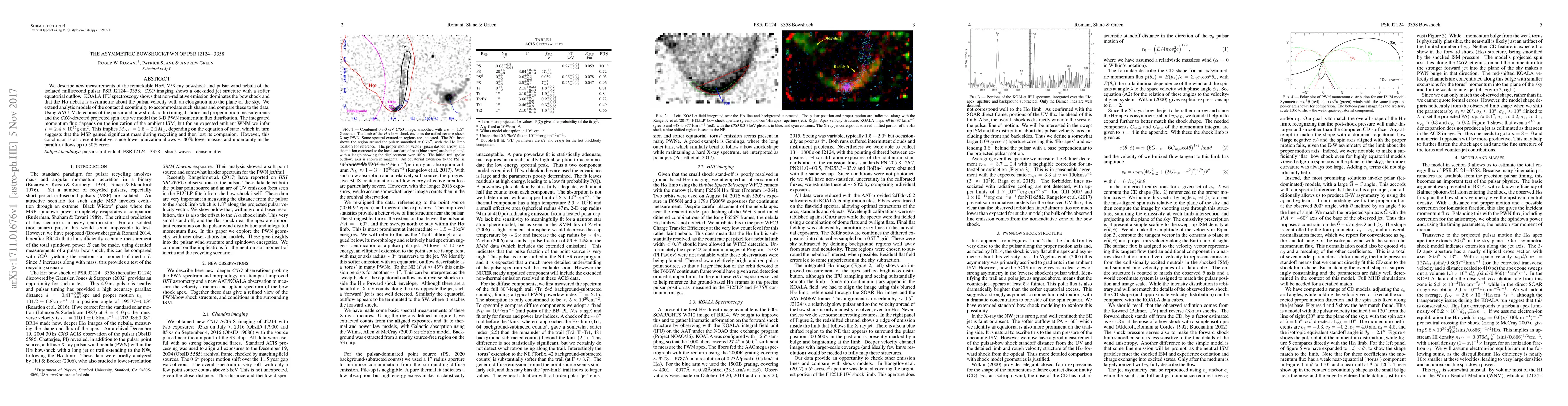 We describe new measurements of the remarkable H$\alpha$/UV/X-ray bowshock and pulsar wind nebula of the isolated millisecond pulsar PSR J2124$-$3358. {\it CXO} imaging shows a one-sided jet structure with a softer equatorial outflow. KOALA IFU spectroscopy shows that non-radiative emission dominates the bow shock and that the H$\alpha$ nebula is asymmetric about the pulsar velocity with an elongation into the plane of the sky. We extend analytic models of the contact discontinuity to accommodate such shapes and compare these to the data. Using {\it HST} UV detections of the pulsar and bow shock, radio timing distance and proper motion measurements and the {\it CXO}-detected projected spin axis we model the 3-D PWN momentum flux distribution. The integrated momentum flux depends on the ionization of the ambient ISM, but for an expected ambient WNM we infer $I = 2.4 \times 10^{45} {\rm g\,cm^2}$. This implies $M_{NS} = 1.6-2.1 M_\odot$, depending on the equation of state, which in turn suggests that the MSP gained significant mass during recycling and then lost its companion. However, this conclusion is at present tentative, since lower ionization allows $\sim 30\%$ lower masses and uncertainty in the parallax allows up to 50% error.