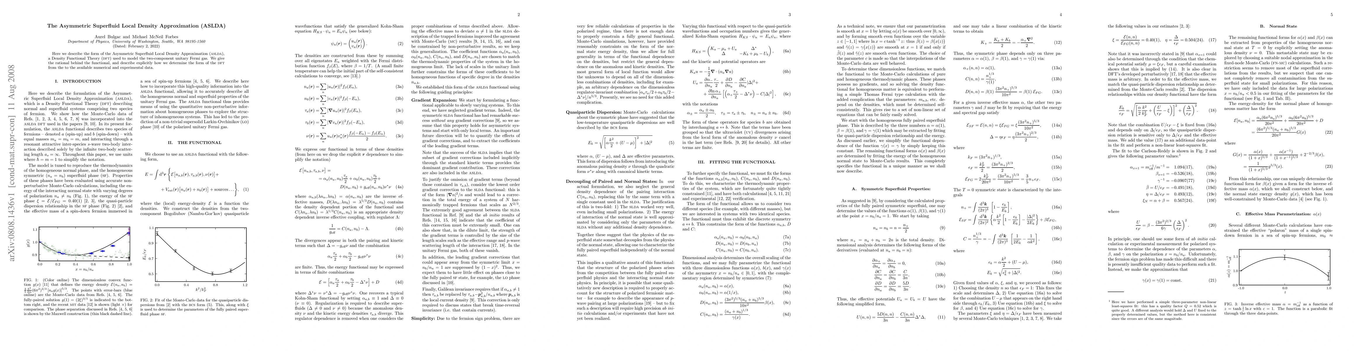 Here we describe the form of the Asymmetric Superfluid Local Density Approximation (ASLDA), a Density Functional Theory (DFT) used to model the two-component unitary Fermi gas. We give the rational behind the functional, and describe explicitly how we determine the form of the DFT from the to the available numerical and experimental data.