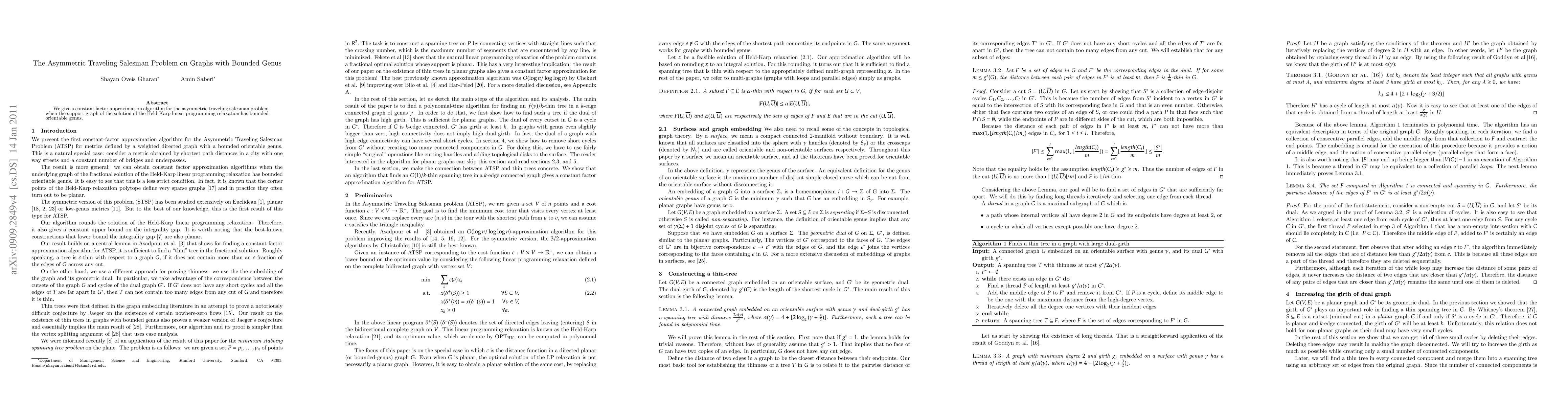 Summary: This paper presents a constant factor approximation algorithm for the asymmetric traveling salesman problem on graphs where the Held-Karp linear programming relaxation's support graph has a bounded orientable genus. The approach leverages the structural properties of such graphs to achieve efficient approximation.