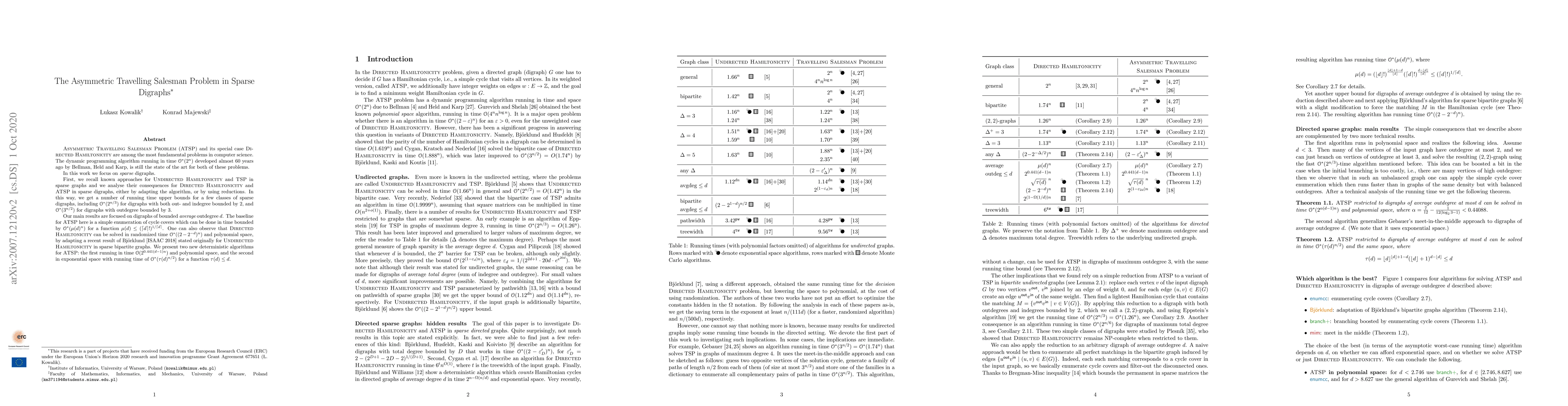Researchers develop new algorithms for solving the Asymmetric Travelling Salesman Problem in sparse digraphs, achieving faster times for certain graph types while maintaining polynomial space complexity.
