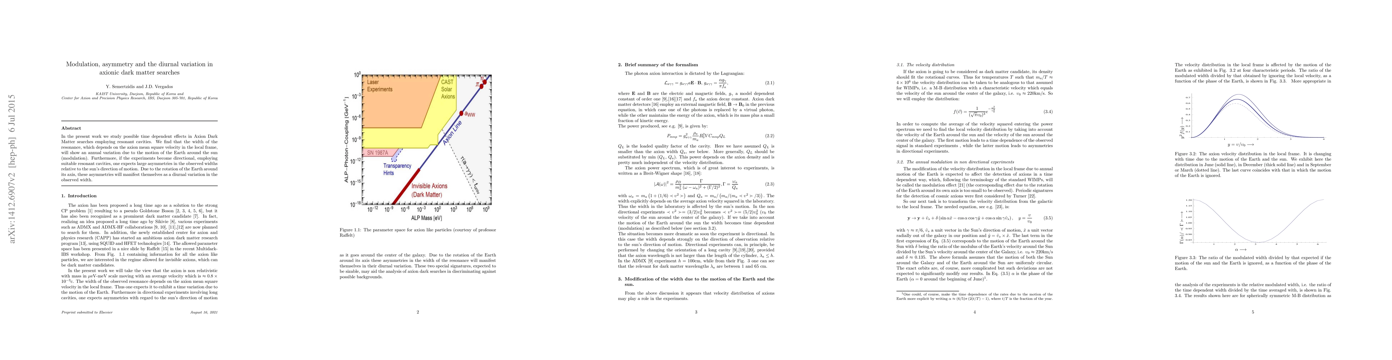 In the present work we study possible time dependent effects in Axion Dark Matter searches employing resonant cavities. We find that the width of the resonance, which depends on the axion mean square velocity in the local frame, will show an annual variation due to the motion of the Earth around the sun (modulation). Furthermore, if the experiments become directional, employing suitable resonant cavities, one expects large asymmetries in the observed widths relative to the sun's direction of motion. Due to the rotation of the Earth around its axis, these asymmetries will manifest themselves as a diurnal variation in the observed width.