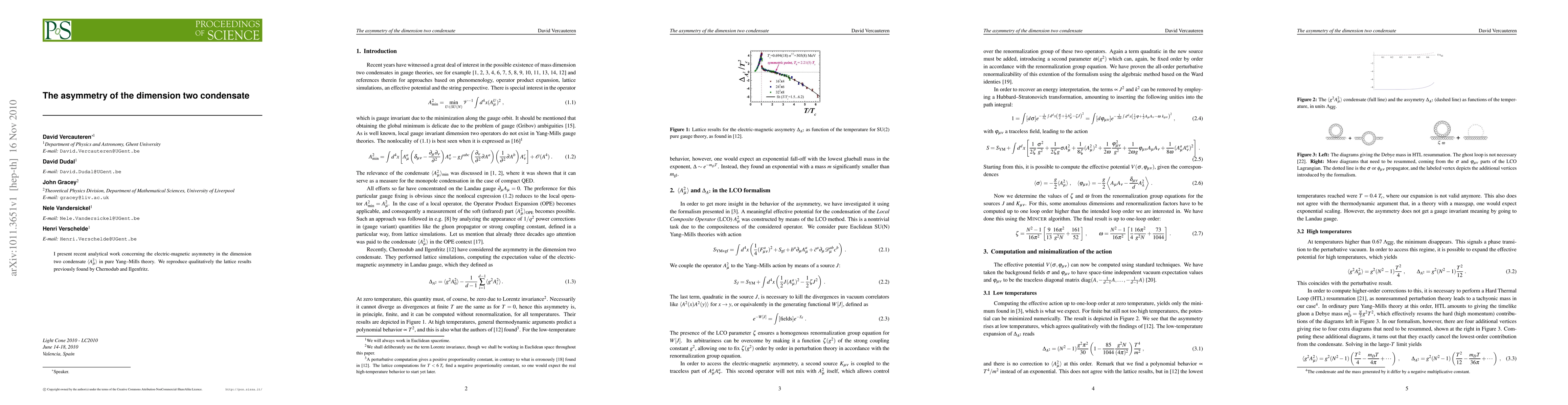 Researchers studied the electric-magnetic asymmetry in a 2D condensate of pure Yang-Mills theory, reproducing previous lattice results.