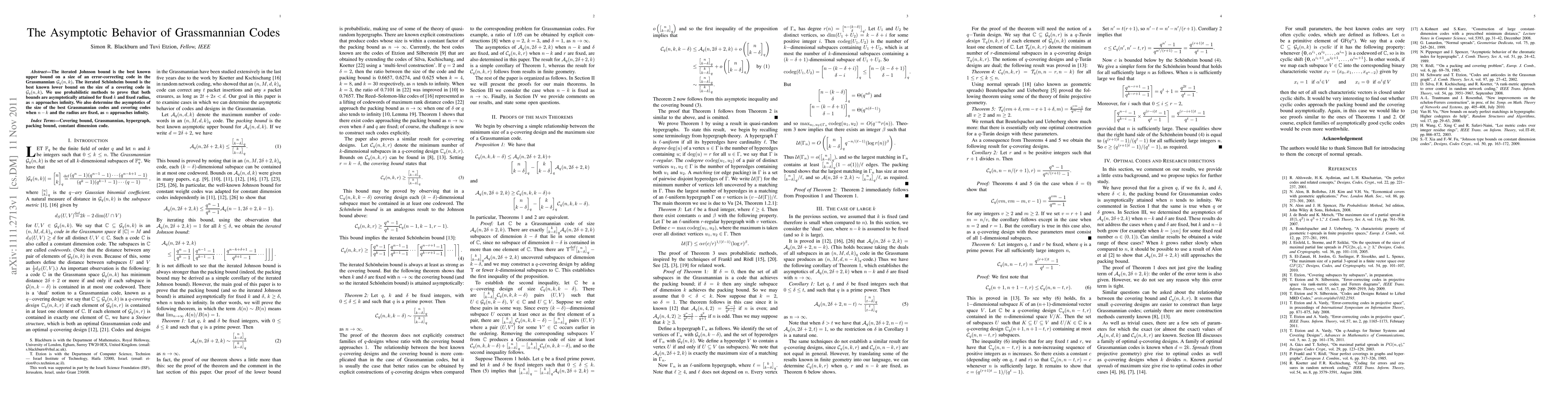 The iterated Johnson bound is the best known upper bound on a size of an error-correcting code in the Grassmannian $\mathcal{G}_q(n,k)$. The iterated Sch\"{o}nheim bound is the best known lower bound on the size of a covering code in $\mathcal{G}_q(n,k)$. We use probabilistic methods to prove that both bounds are asymptotically attained for fixed $k$ and fixed radius, as $n$ approaches infinity. We also determine the asymptotics of the size of the best Grassmannian codes and covering codes when $n-k$ and the radius are fixed, as $n$ approaches infinity.