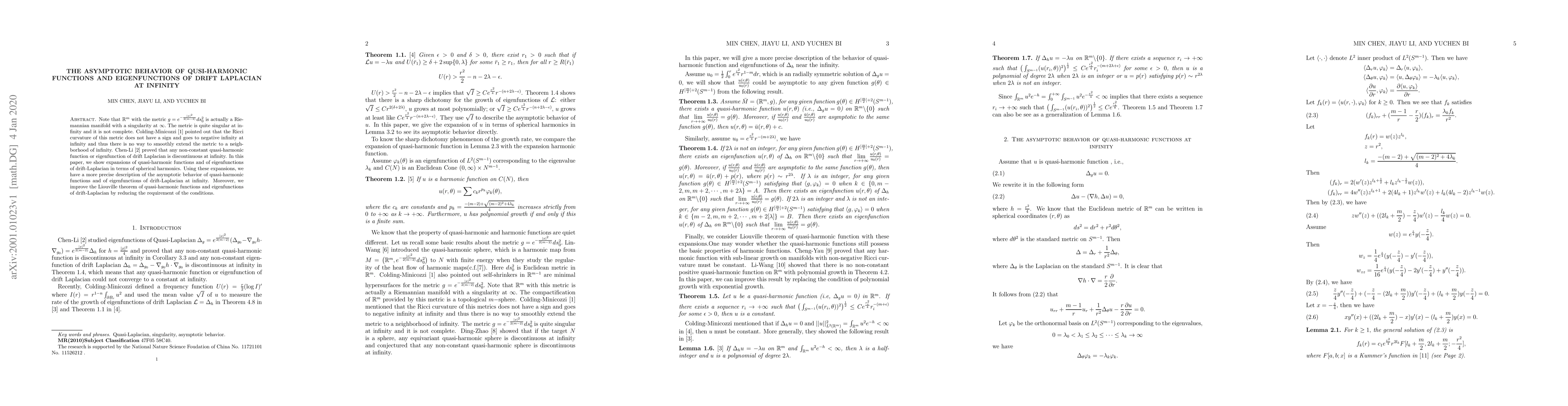 The metric is quite singular at infinity and it is not complete. Using these expansions, we have a more precise description of the asymptotic behavior of quasi-harmonic functions and of eigenfunctions of drift-Laplacian at infinity.