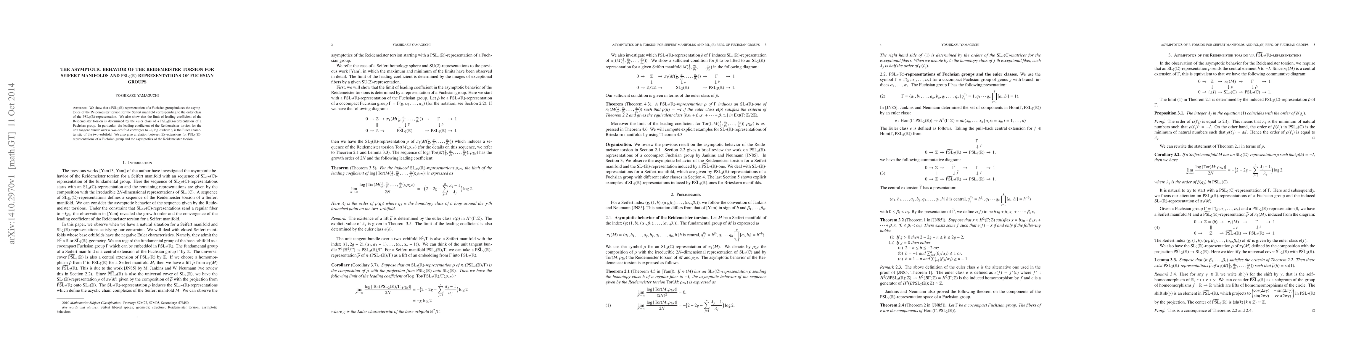We show that a PSL(2;R)-representation of a Fuchsian group induces the asymptotics of the Reidemeister torsion for the Seifert manifold corresponding to the euler class of the PSL(2;R)-representation. We also show that the limit of leading coefficient of the Reidemeister torsion is determined by the euler class of a PSL(2;R)-representation of a Fuchsian group. In particular, the leading coefficient of the Reidemeister torsion for the unit tangent bundle over a two-orbifold converges to $-\chi \log2$ where $\chi$ is the Euler characteristic of the two-orbifold. We also give a relation between $\mathbb{Z}_2$-extensions for PSL(2;R)-representations of a Fuchsian group and the asymptotics of the Reidemeister torsion.