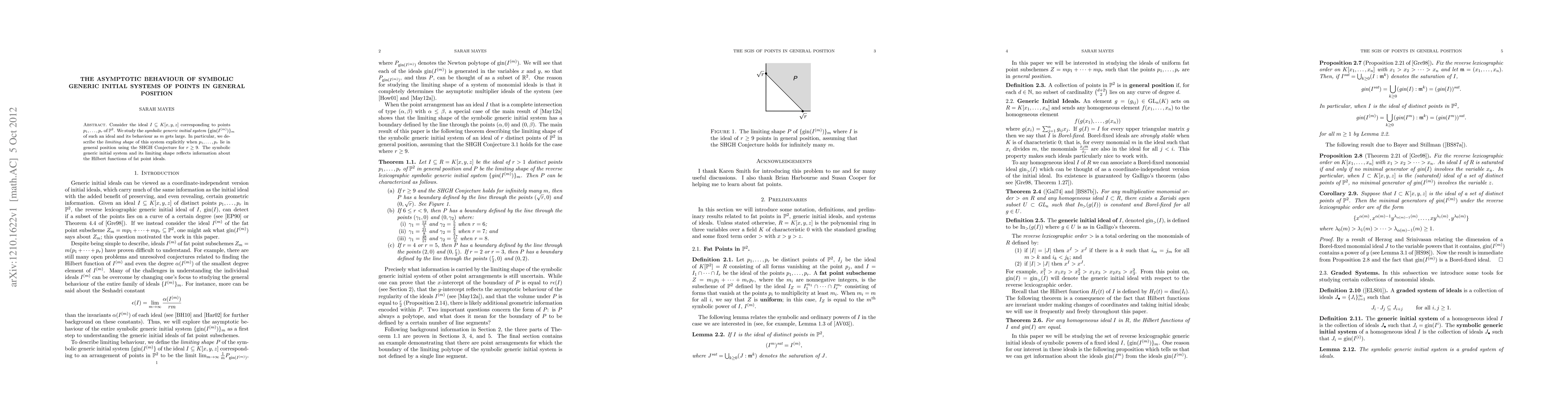 This paper investigates the asymptotic behavior of symbolic generic initial systems of points in projective space, focusing on the ideal corresponding to r points in P^2. It explicitly describes the limiting shape of these systems when points are in general position, leveraging the SHGH Conjecture for more than eight points to reflect information about the Hilbert functions of uniform fat point ideals.