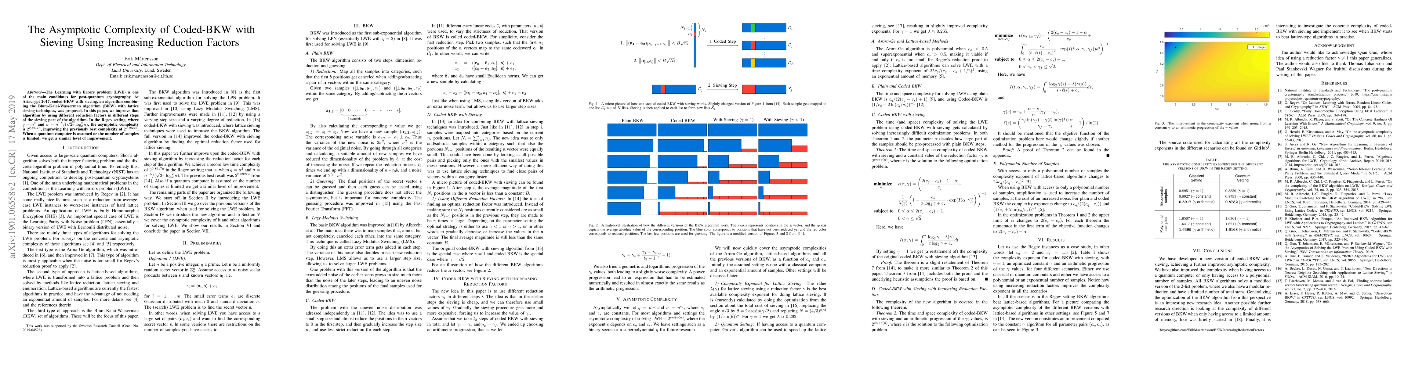 This paper improves the asymptotic complexity of the coded-BKW with sieving algorithm for solving the Learning with Errors problem, achieving a complexity of $2^{0.8917n}$ in the Regev setting, surpassing the previous best complexity of $2^{0.8927n}$. The improvement is realized by employing varying reduction factors in different stages of the sieving process.