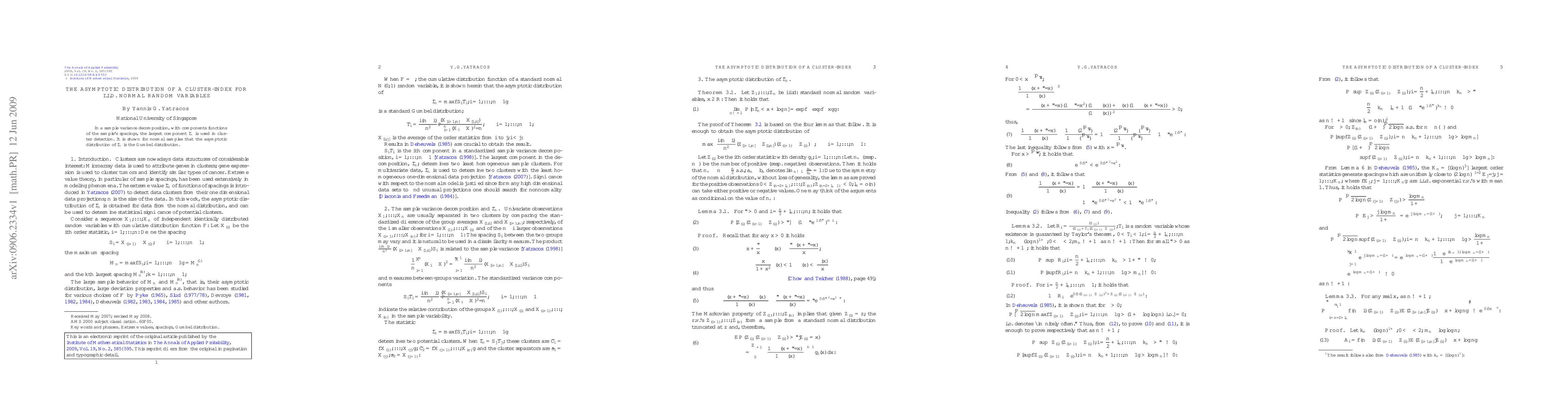 In a sample variance decomposition, with components functions of the sample's spacings, the largest component $\tilde{I}_n$ is used in cluster detection. It is shown for normal samples that the asymptotic distribution of $\tilde{I}_n$ is the Gumbel distribution.