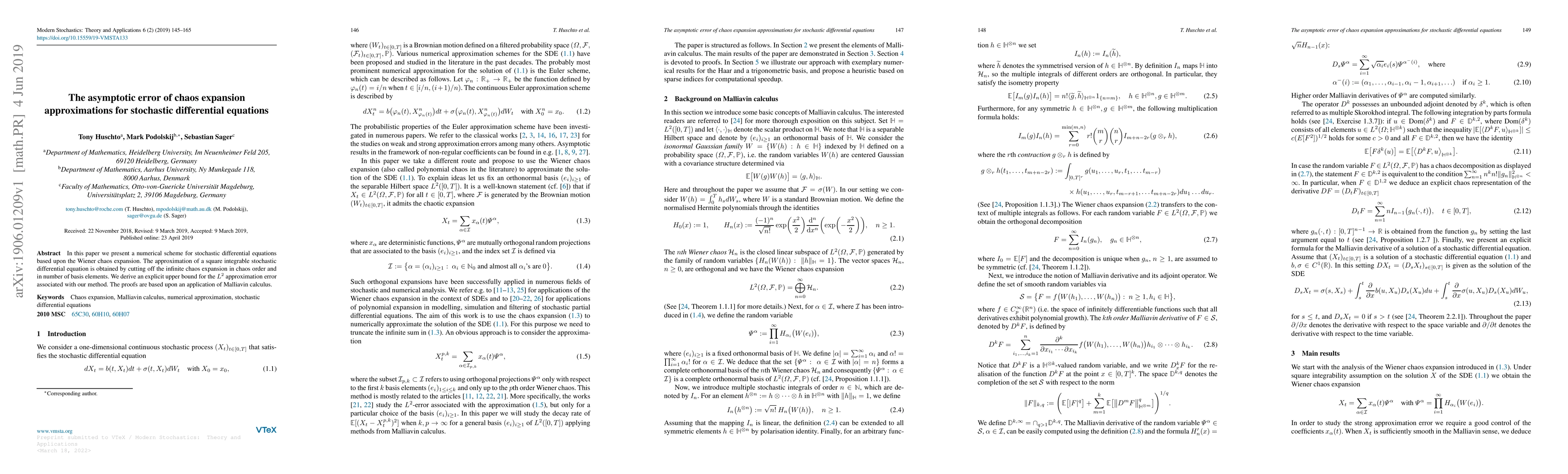 This paper introduces a numerical scheme for stochastic differential equations using Wiener chaos expansion, deriving an explicit upper bound for the $L^2$ approximation error through truncation of the chaos expansion, with proofs grounded in Malliavin calculus.