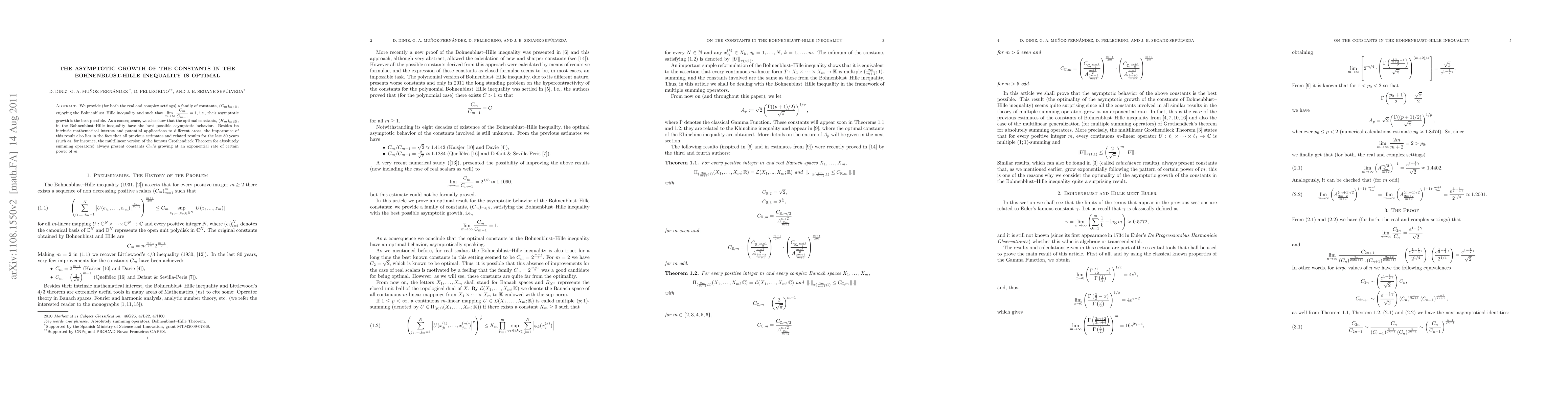 This paper demonstrates that the asymptotic growth of the constants in the Bohnenblust-Hille inequality is optimal, presenting a family of constants that achieve the best possible growth rate. The result implies that previous estimates, including those in the multilinear version of Grothendieck's Theorem, were not optimal.