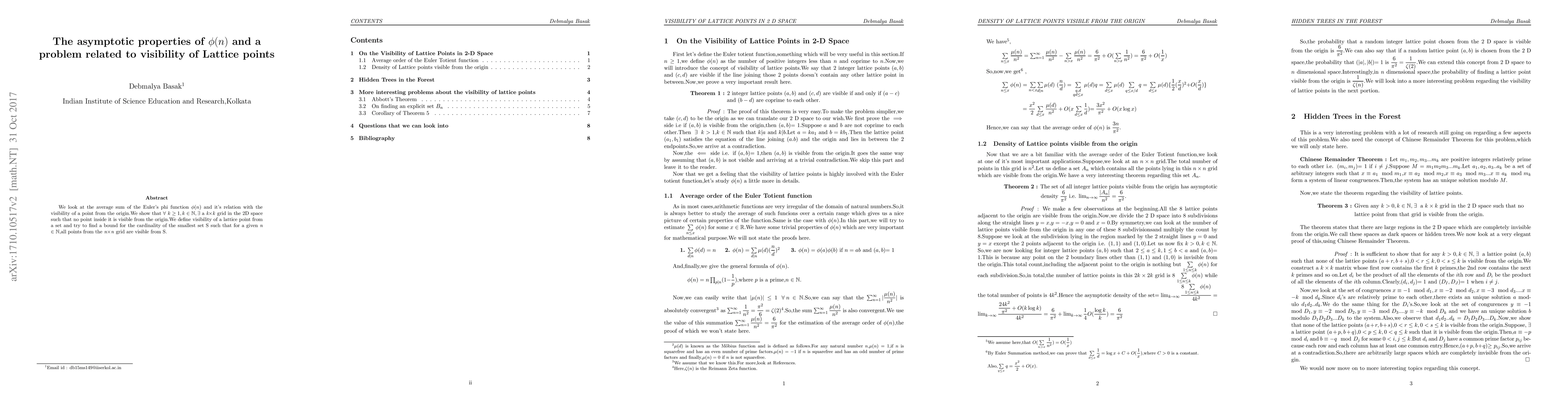 We look at the average sum of the Euler's phi function $\phi{(n)}$ and it's relation with the visibility of a point from the origin.We show that $\forall{\hspace{0.05in}{k} \ge{1}},k\in\mathbb{N},\exists$ a $k$$\times$$k$ grid in the 2D space such that no point inside it is visible from the origin.We define visibility of a lattice point from a set and try to find a bound for the cardinality of the smallest set S such that for a given $n$ $\in\mathbb{N}$,all points from the $n$$\times$$n$ grid are visible from S.