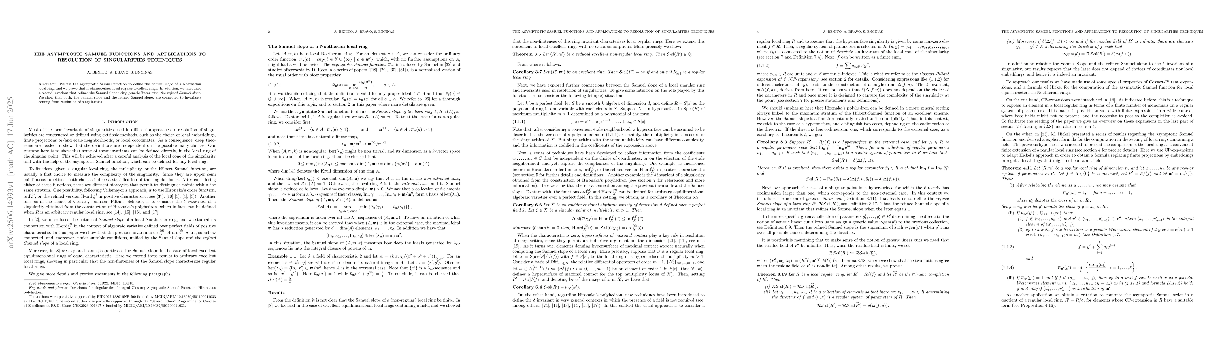 We use the asymptotic Samuel function to define the Samuel slope of a Noetherian local ring, and we prove that it characterizes local regular excellent rings. In addition, we introduce a second invariant that refines the Samuel slope using generic linear cuts, the refined Samuel slope. We show that both, the Samuel slope and the refined Samuel slope, are connected to invariants coming from resolution of singularities.
