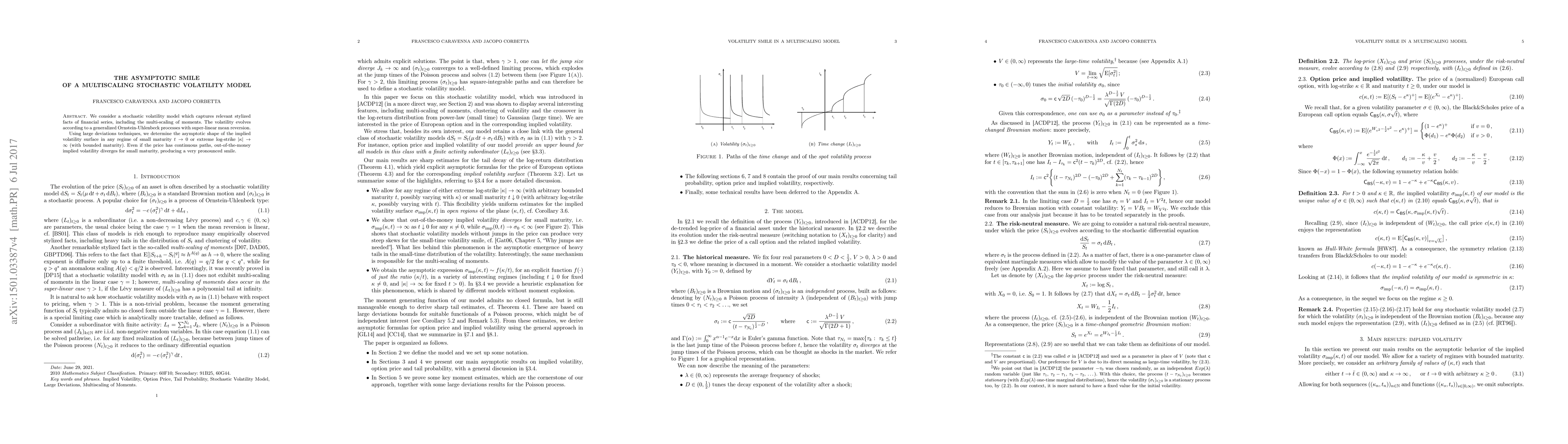 The paper presents a rigorous mathematical framework using large deviations theory to characterize the implied volatility surface and option pricing in a multiscaling stochastic volatility model.