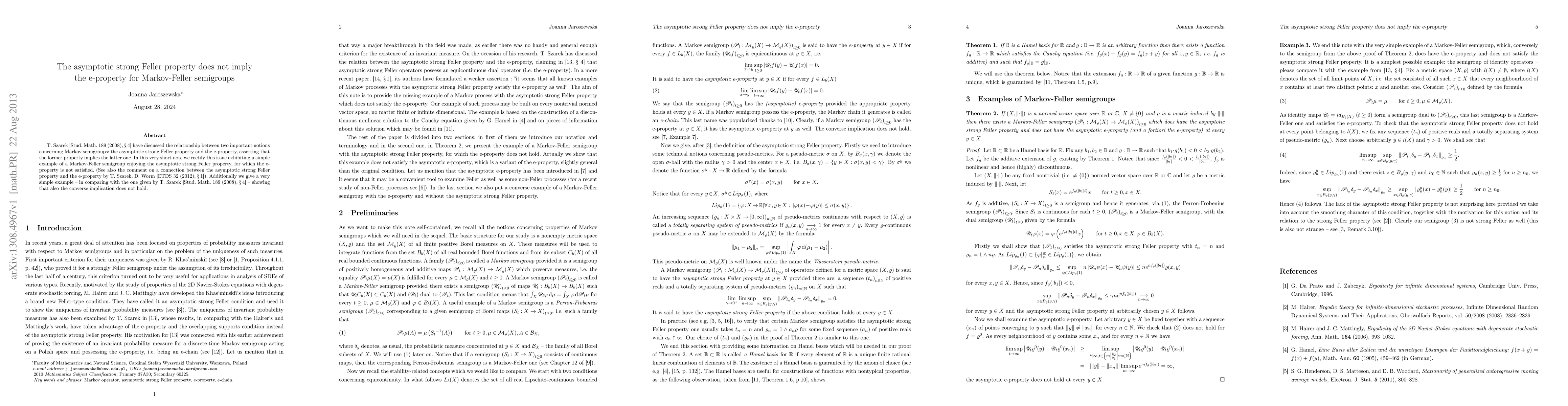 The research corrects a misconception in the literature, offering a new perspective on the relationship between the asymptotic strong Feller property and the e-property for Markov-Feller semigroups.