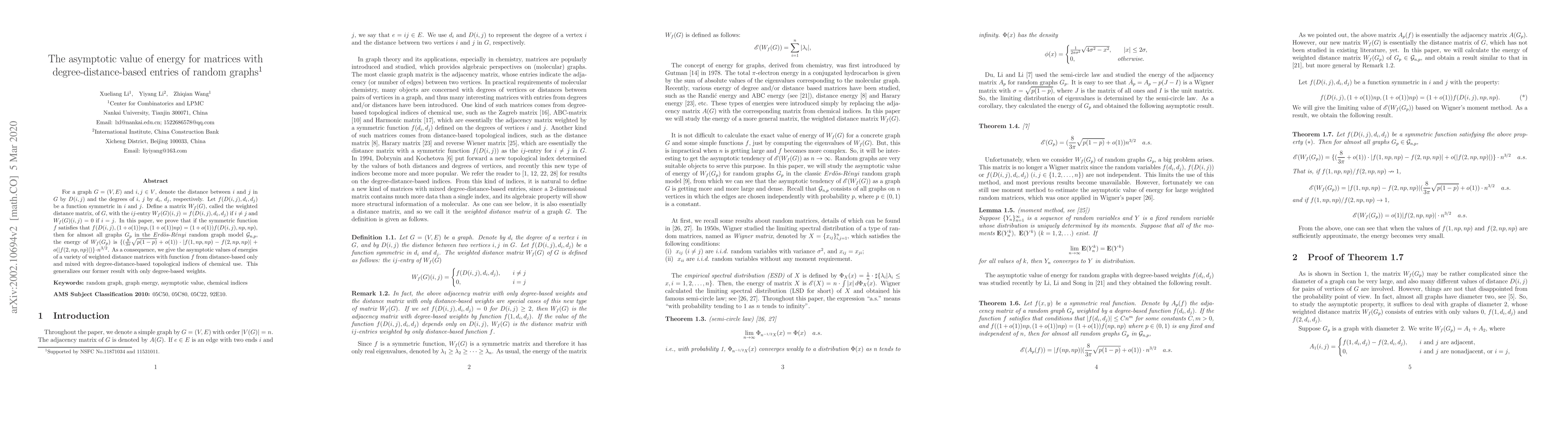 For a graph $G=(V, E)$ and $i, j\in V$, denote the distance between $i$ and $j$ in $G$ by $D(i, j)$ and the degrees of $i$, $j$ by $d_i$, $d_j$, respectively. Let $f(D(i, j), d_{i}, d_{j})$ be a function symmetric in $i$ and $j$. Define a matrix $W_f(G)$, called the weighted distance matrix, of $G$, with the $ij$-entry $W_f(G)(i, j)=f(D(i, j), d_{i}, d_{j})$ if $i\neq j$ and $W_f(G)(i, j)=0$ if $i=j$. In this paper, we prove that if the symmetric function $f$ satisfies that $f(D(i, j), (1+o(1))np, (1+o(1))np)=(1+o(1))f(D(i, j), np, np)$, then for almost all graphs $G_p$ in the $Erd\ddot{o}s$-$R\acute{e}nyi$ random graph model $\mathcal{G}_{n, p}$, the energy of $W_f(G_p)$ is $\{(\frac{8}{3\pi}\sqrt{p(1-p)}+o(1))\cdot|f(1, np, np)-f(2, np, np)|+o(|f(2, np, np)|)\}\cdot n^{3/2}$. As a consequence, we give the asymptotic values of energies of a variety of weighted distance matrices with function $f$ from distance-based only and mixed with degree-distance-based topological indices of chemical use. This generalizes our former result with only degree-based weights.