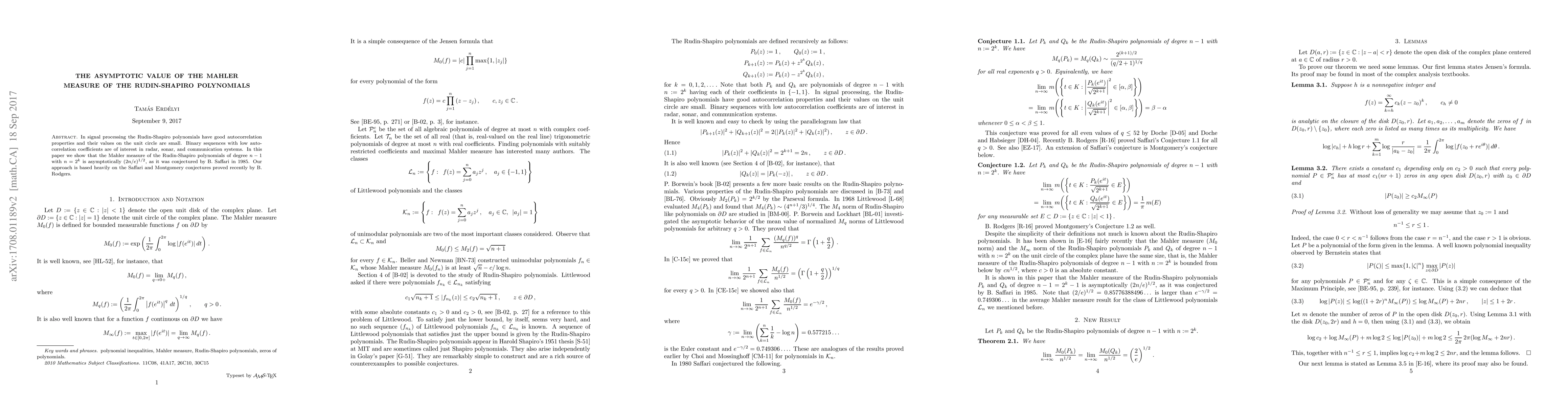This paper demonstrates that the Mahler measure of Rudin-Shapiro polynomials of degree $n=2^k-1$ asymptotically approaches $(2n/e)^{1/2}$, confirming a 1985 conjecture by B. Saffari. The result is derived using recent proofs of the Saffari and Montgomery conjectures by B. Rodgers.