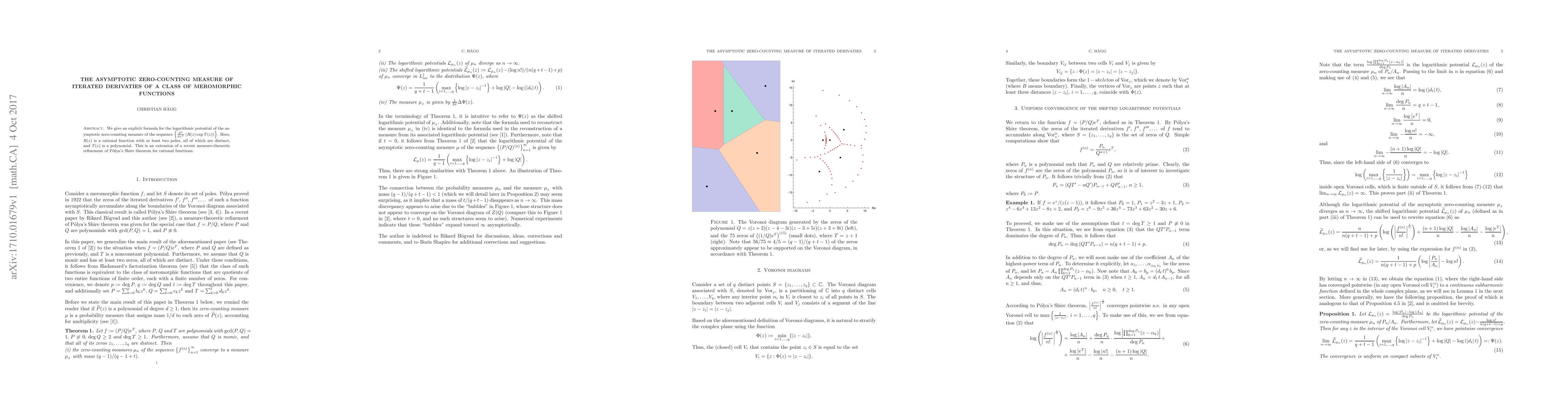 This paper provides an explicit formula for the logarithmic potential of the asymptotic zero-counting measure of iterated derivaties of a class of meromorphic functions, extending Pólya's Shire theorem.