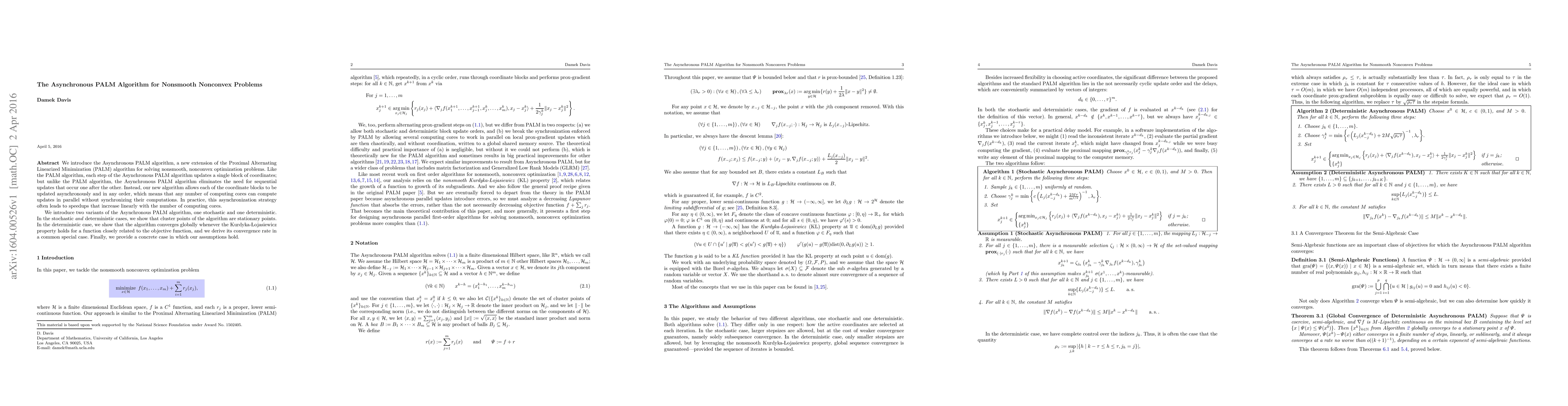 The Asynchronous PALM algorithm extends the PALM method for solving nonsmooth, nonconvex optimization problems by allowing asynchronous, parallel updates of coordinate blocks, leading to linear speedups with more computing cores. Both stochastic and deterministic variants are introduced, with convergence guarantees under certain conditions.