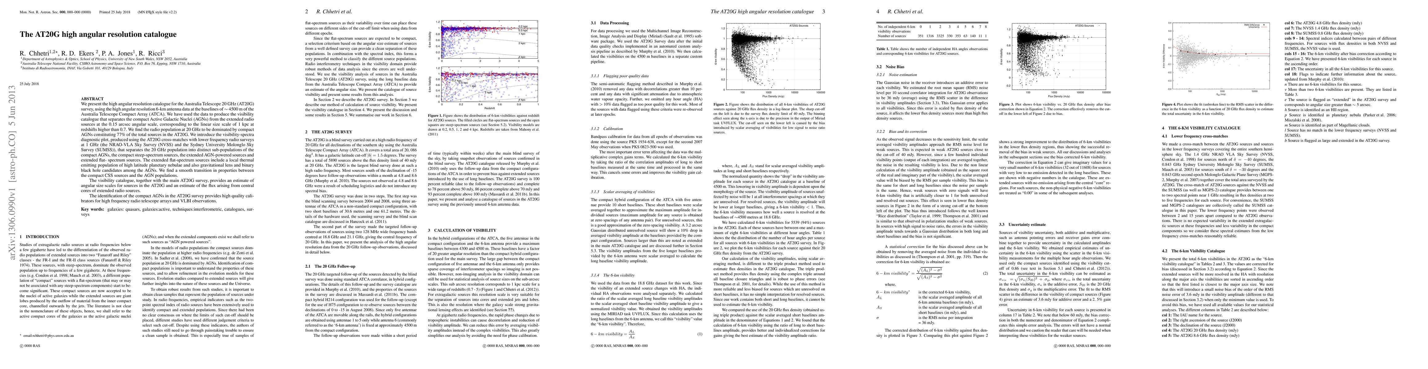 The AT20G high angular resolution catalogue identifies compact Active Galactic Nuclei (AGNs) as the dominant radio population at 20 GHz, constituting 77% of total sources. The catalogue uses ATCA data to distinguish between compact and extended radio sources, revealing a smooth transition between compact steep-spectrum sources and AGN populations.