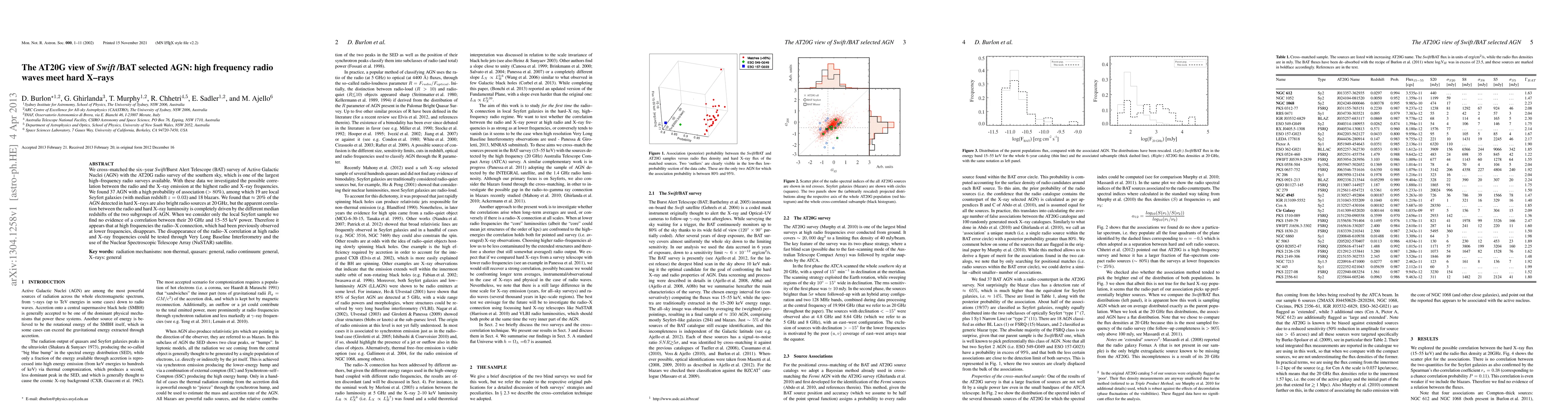 This study cross-matched Swift/BAT AGN data with the AT20G radio survey to investigate the correlation between high-frequency radio and hard X-ray emissions. It found no significant correlation between 20 GHz radio and 15-55 keV X-ray luminosities in local Seyfert galaxies, suggesting the previously observed radio-X connection vanishes at high frequencies.