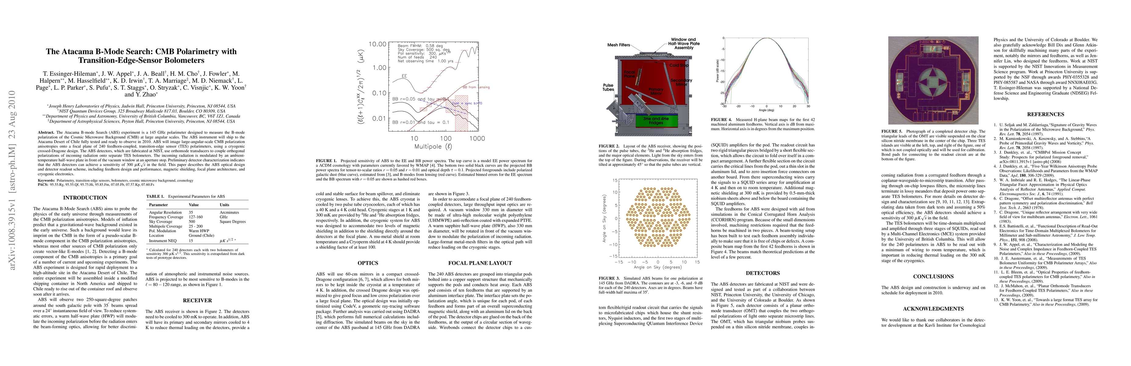 The Atacama B-mode Search experiment will measure CMB polarization at large angular scales using 240 TES polarimeters in the Atacama Desert, with initial sensitivity of 300 $¼ K √ s$.
