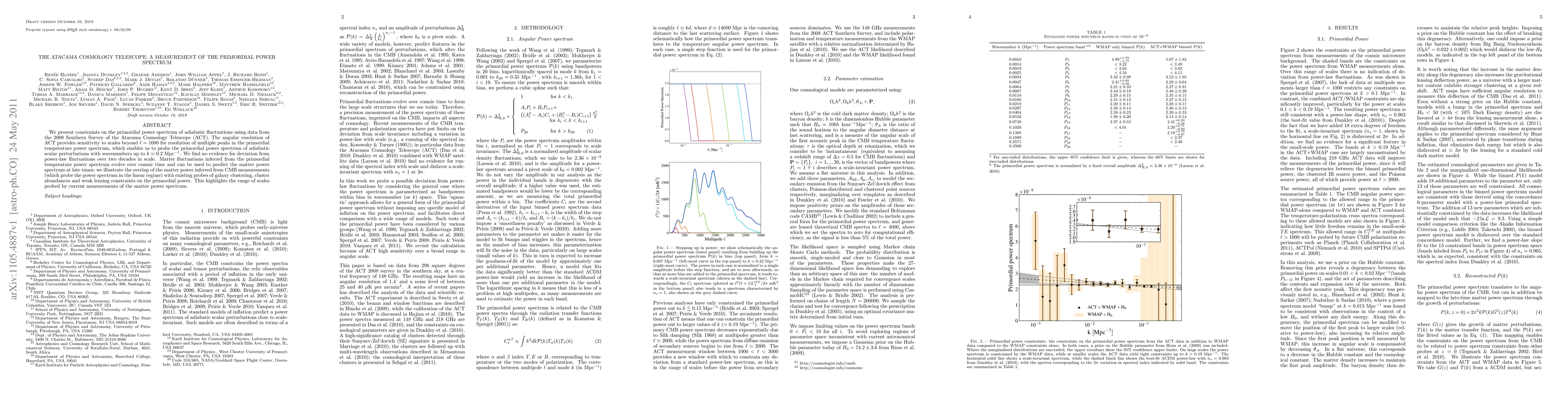 The Atacama Cosmology Telescope found no evidence for deviation from power-law fluctuations in the primordial temperature power spectrum over 20 scales, providing constraints on adiabatic scalar perturbations.