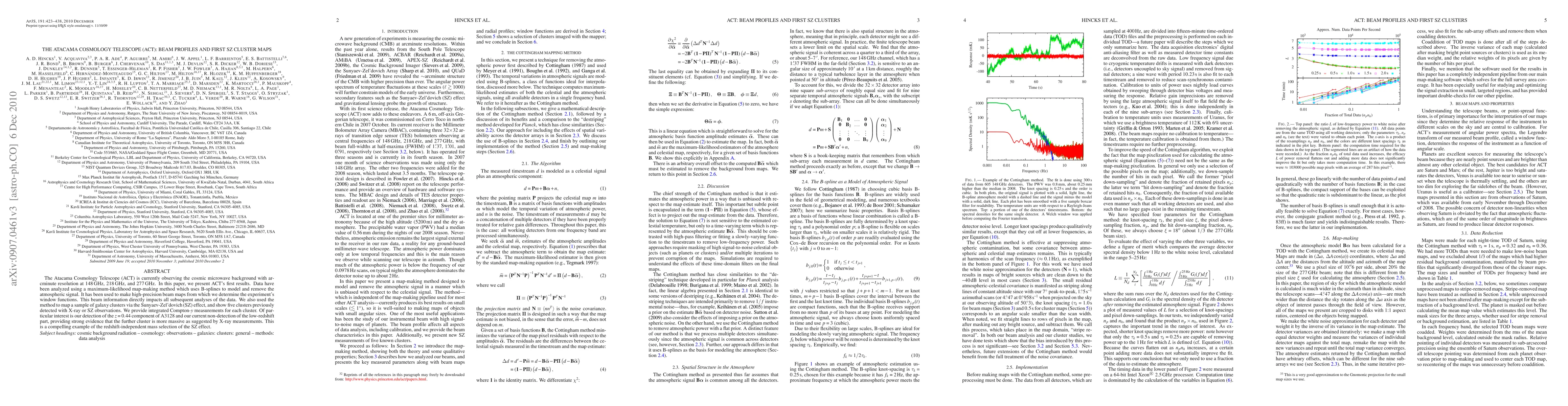 The Atacama Cosmology Telescope (ACT) presents its first results, utilizing a maximum-likelihood map-making method for high-precision beam and SZ cluster mappings. Key findings include determined window functions, five detected clusters with Compton-y measurements, and a notable detection of A3128's distant component, supporting SZ effect's redshift-independent mass selection.
